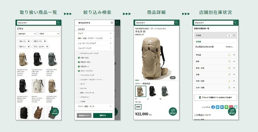 新しいアイテムの購入や追加を検討している時に、あらかじめ店舗にあるか気軽に知りたい!そんなお客様のニーズにお答えするために、全国の店舗在庫や商品情報がオンラインやアプリから確認出来る「店舗在庫表示サービス」の運用を開始します。新サービスをご利用いただくことで、250以上の国内外の人気ブランドから豊富なラインナップをいつでもどこでもパソコンやスマートフォンから確認できるようになります。店頭に行く前に商品を検討したい方、たくさんの登山用品をスピーディーに確認したい方にも便利にご利用頂けます。