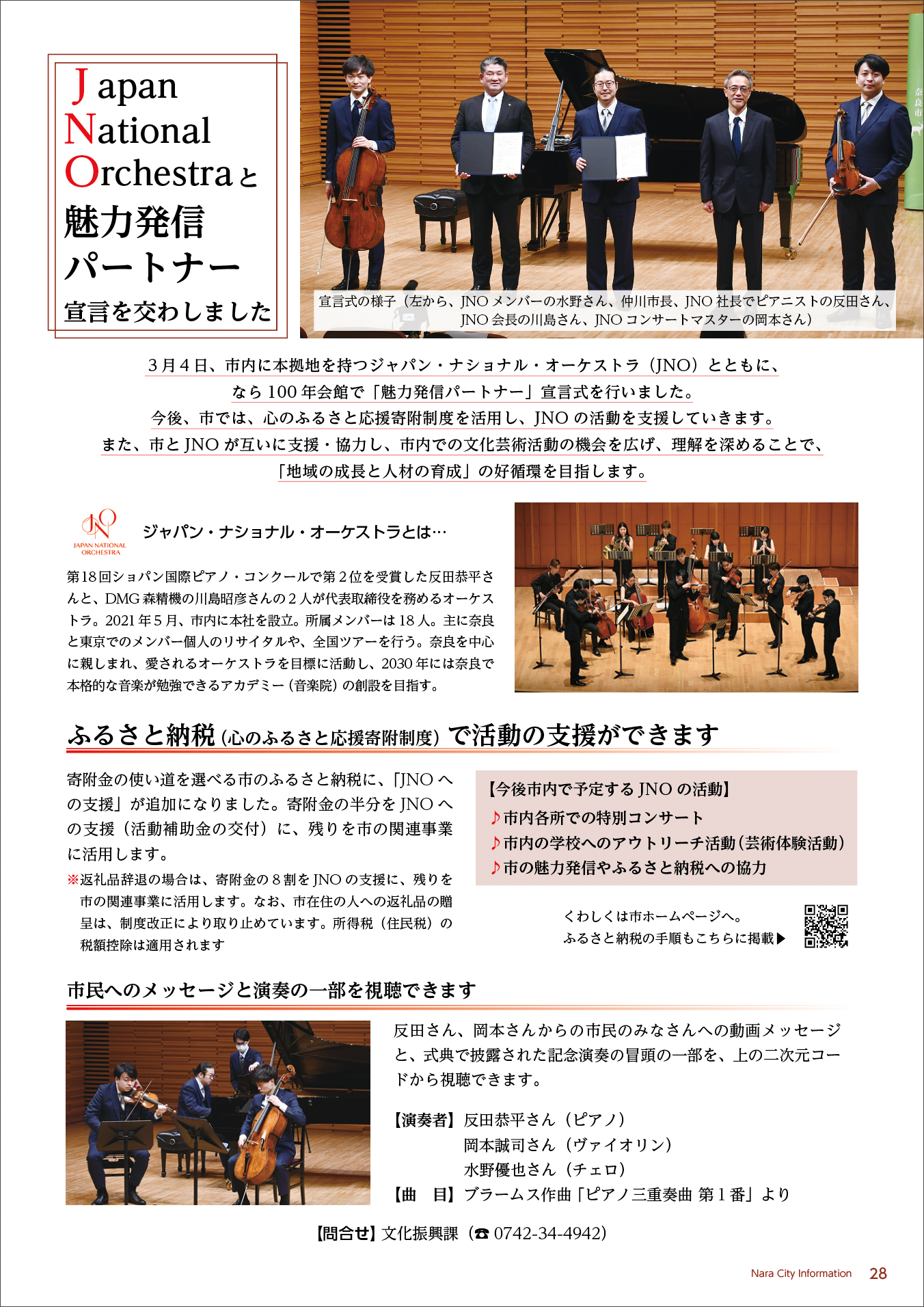 ▼奈良市ふるさと納税でJapan National Orchestraへの支援ができます