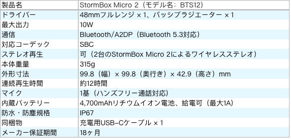 手のひらサイズで最大出力10W、12時間の連続再生を実現したタフ&パワフルな防塵防水ワイヤレススピーカー「StormBox Micro 2」を発売