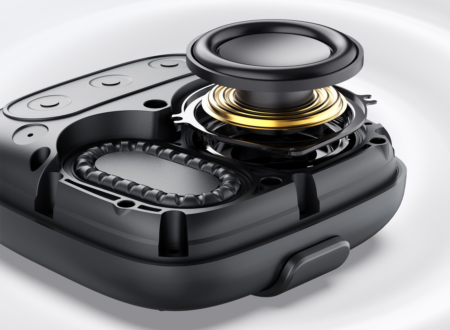 手のひらに載るほど小さく軽いボディに、自社開発の48mm径NDFeBドライバーを搭載しました。2枚のコーンを重ね合わせて配置したパッシブラジエーターと独自の低域ブースト技術「XBass®」を駆使し、高音域を犠牲にしない量感豊かな低音を実現します。総合出力は最大10Wと、前モデルStormBox Micro(9W)からさらにパワーアップしています。