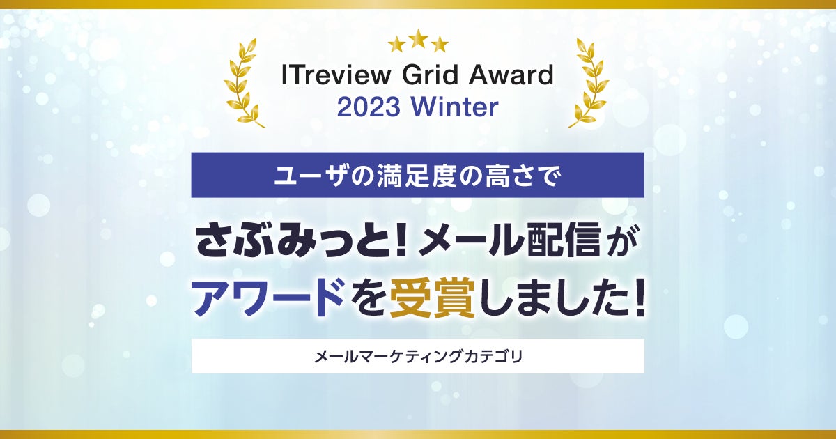 メール配信ツール「さぶみっと!メール配信」、「ITreview Grid Award 2023 Winter」High Performerの称号を受賞!受賞を記念したレビューキャンペーンも実施