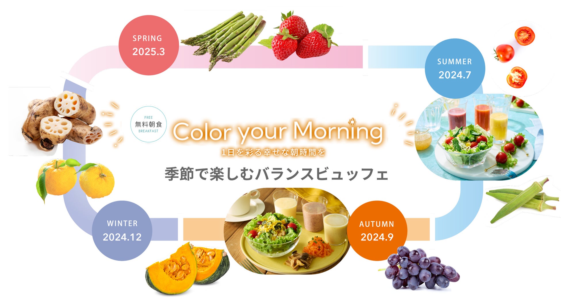 コンフォートホテルではこれからもお客さまがより彩りある一日を過ごせるよう、1年間4つの季節を通して、訪れるたびに楽しめる魅力ある朝食を提供します。