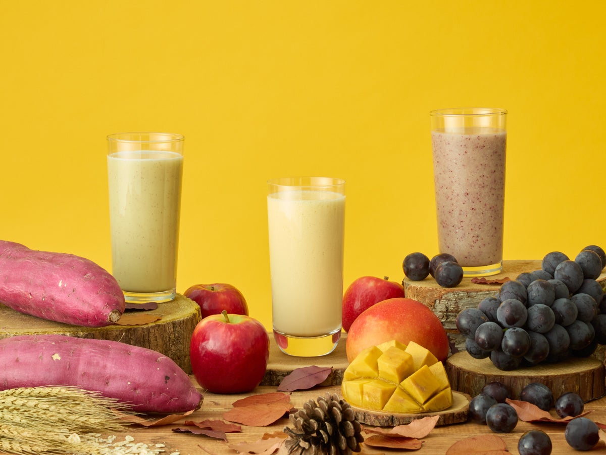 2024年9月1日(日)から2024年11月30日(土)までの期間、秋を彩るさつまいもやりんご、ぶどうなどをふんだんに使ったスムージーや、秋定番の野菜であるきのこやかぼちゃなどを使用したサラダが登場します。また、一部のコンフォートインでも秋のスムージーがお楽しみいただけます。