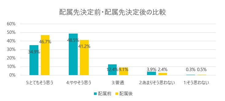 今回の調査では、すべての項目において、配属先決定後に相関が強まる傾向が見られた。
