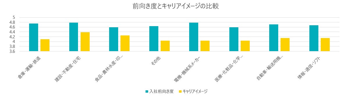 また、「入社への前向き度」と「キャリアイメージ」のスコアには正の相関があり、入社に前向きな人ほど、キャリアイメージも明確になっている傾向が見られる。これは、新入社員が自分の配属先や役割を理解し、その環境でどのように成長できるかをイメージできることが、モチベーションの向上にも大きくつながっていることを示している。
