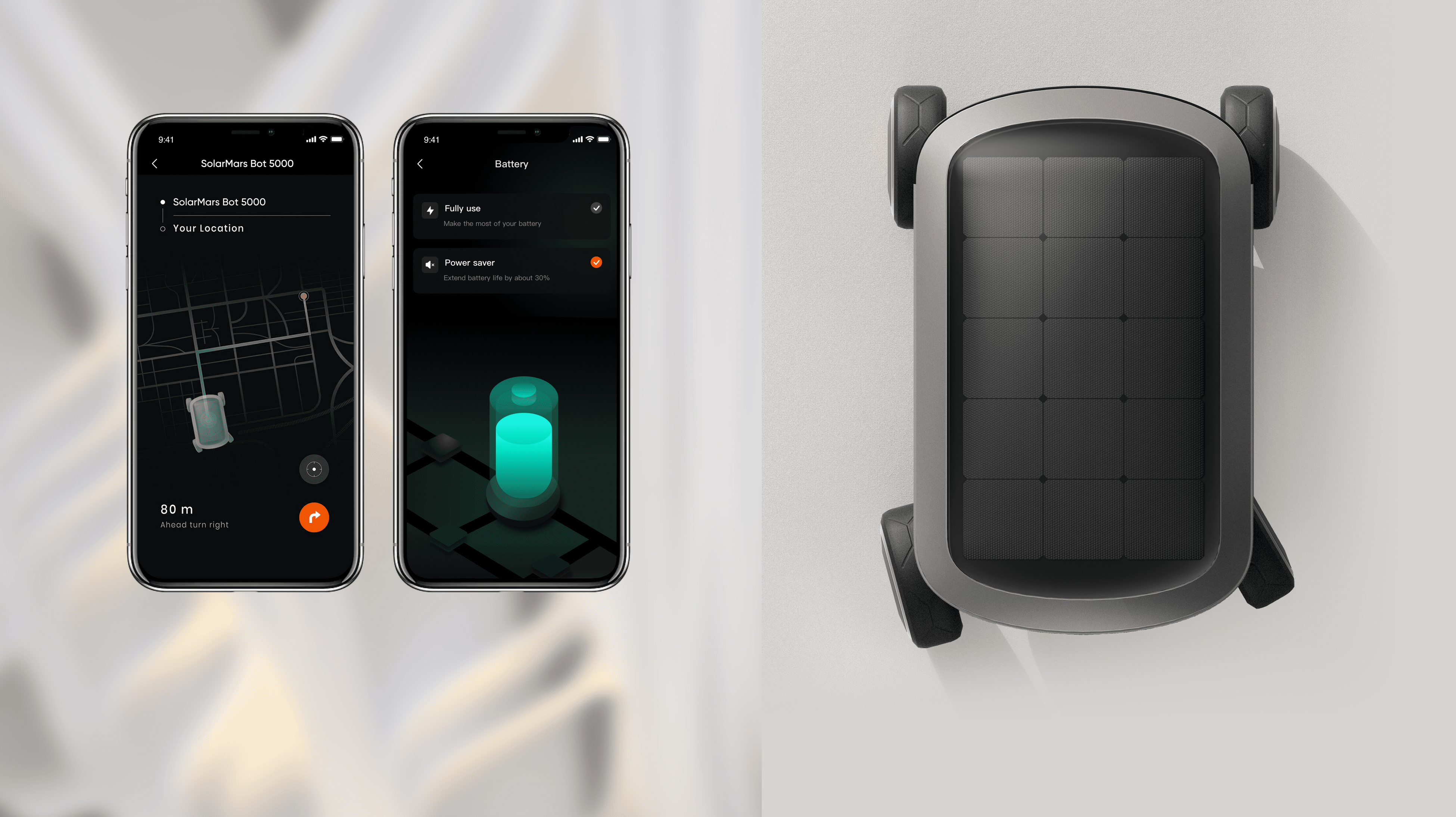 Jackery Solar Mars Botには、上部にソーラーパネルを備え、自動的に太陽光を追跡するシステムが搭載されています。このシステムにより晴れた日には、手動での操作なしで自動で移動することで発電量を最大化します。夜間には自動的に充電するための電力を検出し、必要に応じて充電経路を計画することができます。Jackery Solar Mars Botには4Gモジュールを始め、さまざまなポートが装備されており、アプリによる追跡と位置情報を介して移動できます。これは太陽光発電、電力貯蔵、充電システムの3つを統合した、Jackeryの提案する「未来のコンセント」のコンセプトモデルです。
