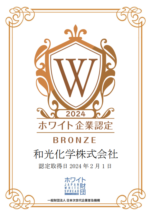 和光化学株式会社様が、一般財団法人日本次世代企業普及機構(通称:ホワイト財団)が運営する「ホワイト企業認定 ブロンズランク」を取得しましたことをお知らせいたします。