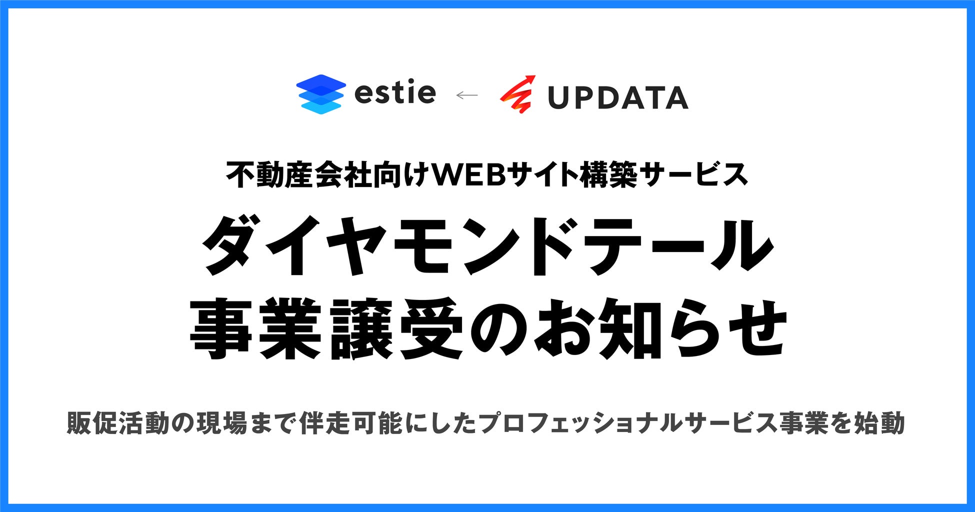 estie、UPDATAより不動産会社向けWEBサイト構築サービス「ダイヤモンドテール」事業を譲受