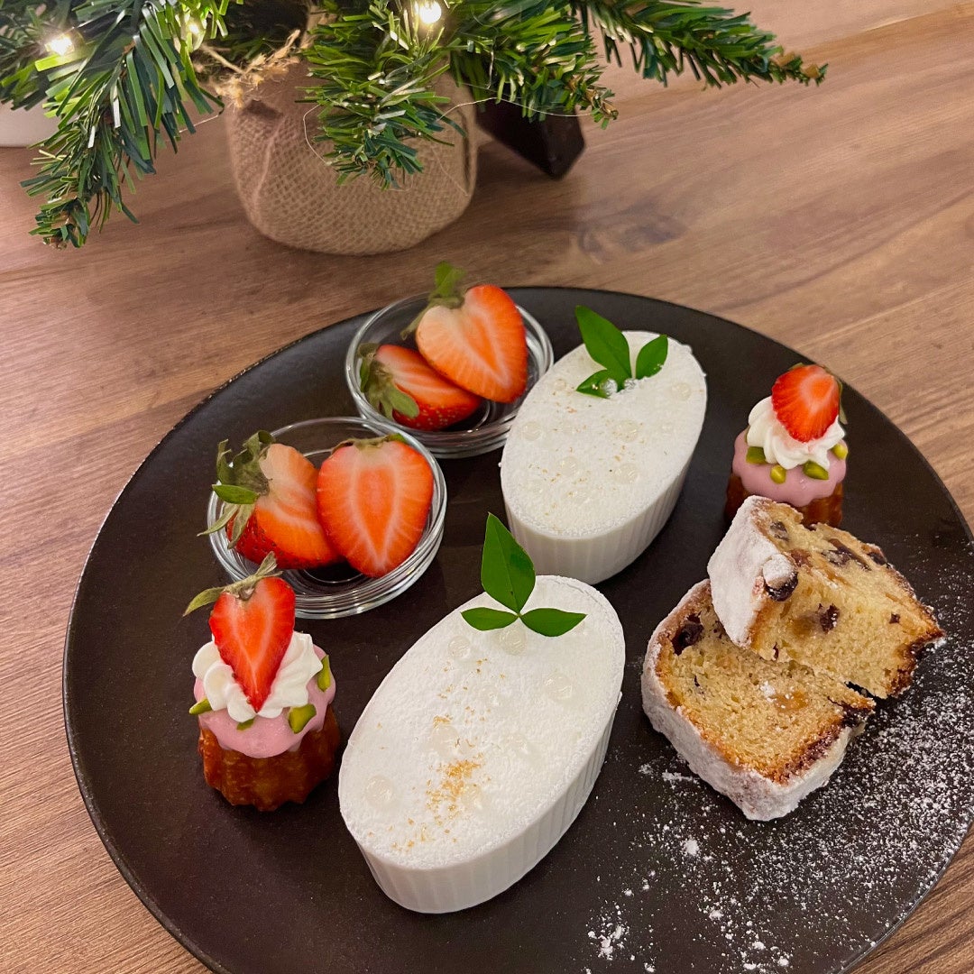 ベリーのパルフェ/カシスのレアチーズケーキ/いちごのカヌレ/シュトーレン/いちご/アマンドショコラ/スコーン2種(チーズ・プレーン)いちごジャム・クロテッドクリーム添え