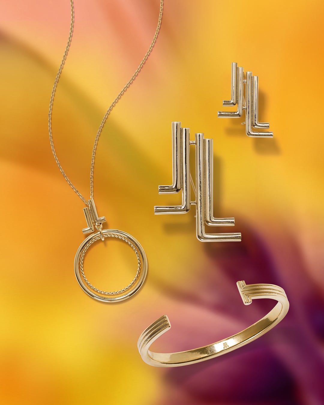 LANVINの創業者であるジャンヌ・ランバンの頭文字を取った「ダブルJLマーク」コレクションの新作は、表情の異なる2種類のサークルパーツが軽やかに揺れるネックレスと、ダブルJLマークがぐるりと手首を包み込む、着ける人を選ばないユニセックスなデザインのバングル。