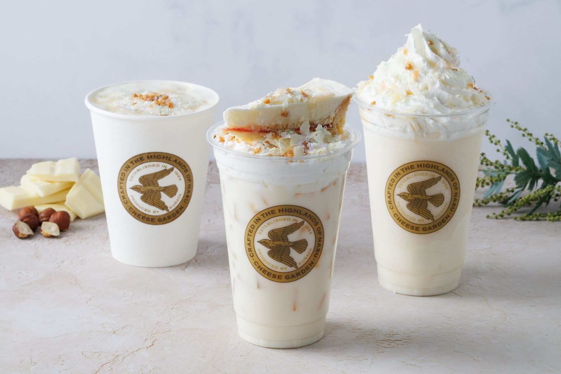 【チーズガーデン】心浮き立つ華やかなホワイトデーシーズン限定カフェドリンク “ホワイトショコラ×ヘーゼルナッツ×チーズ”のハーモニー『Sweet White Fromage』