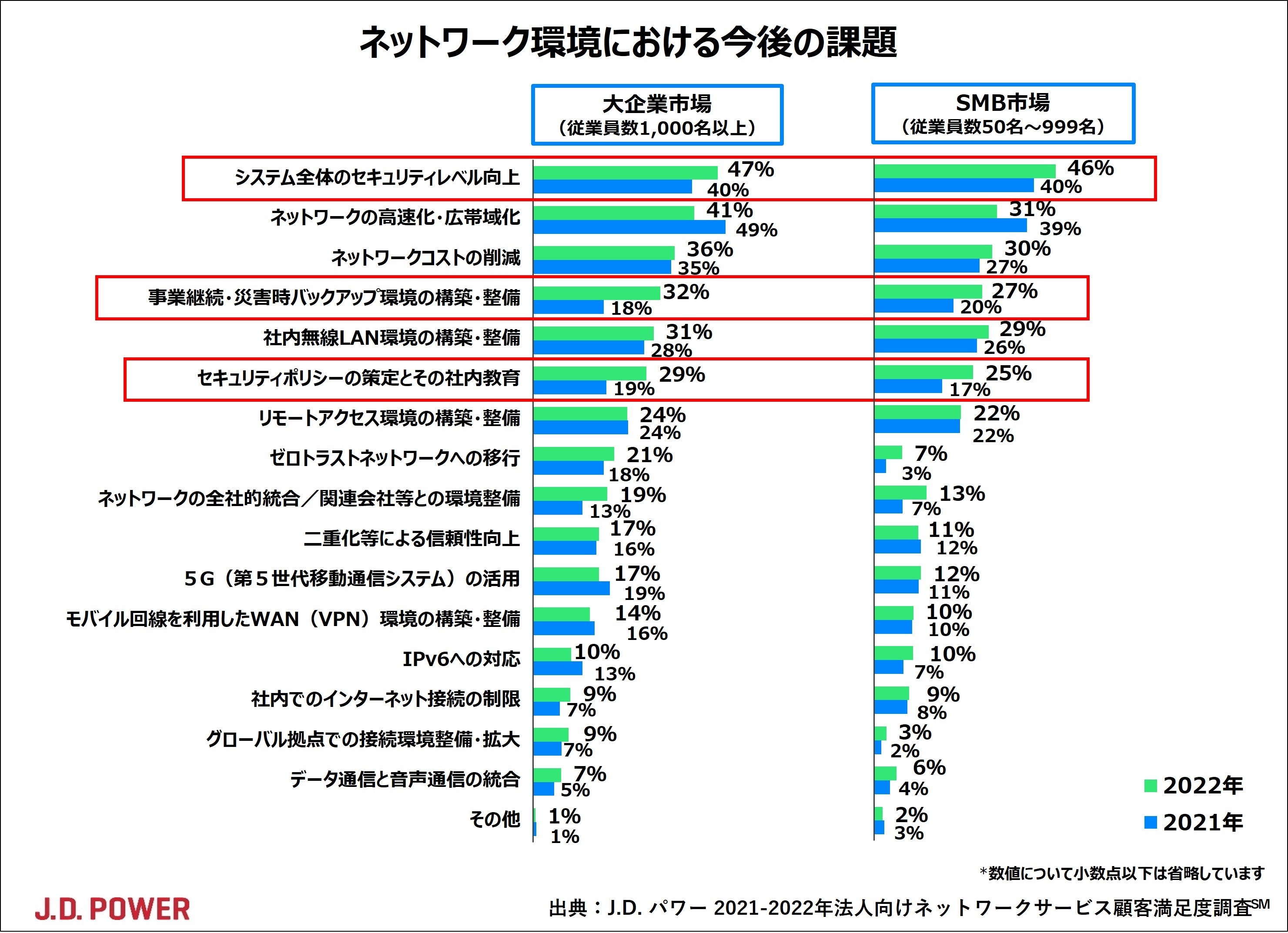 ネットワーク環境における今後の課題、セキュリティやIT-BCPへの意識が大きく向上【J.D. パワー 2022年法人向けネットワークサービス顧客満足度調査℠】