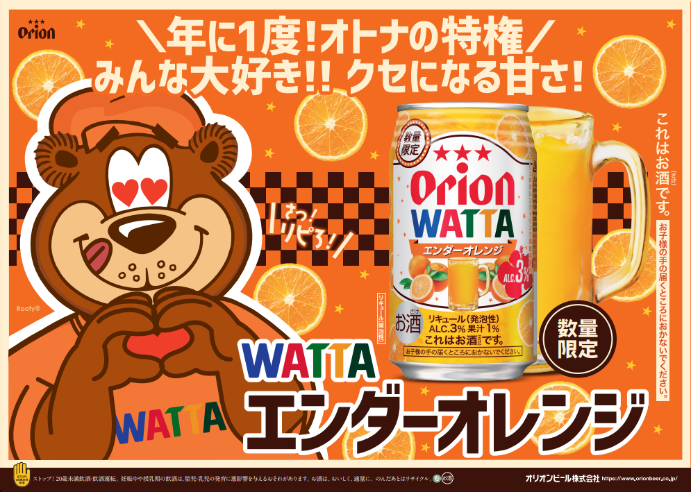 オリオンビール株式会社(本社:沖縄県豊見城市、代表取締役社長 兼 執行役員社長 CEO 村野 一)は、チューハイ「WATTA(ワッタ)」から、エイアンドダブリュ沖縄株式会社とタッグを組んだコラボレーション商品「オリオン WATTA エンダーオレンジ」を11月26日(火)より数量限定で発売いたします。