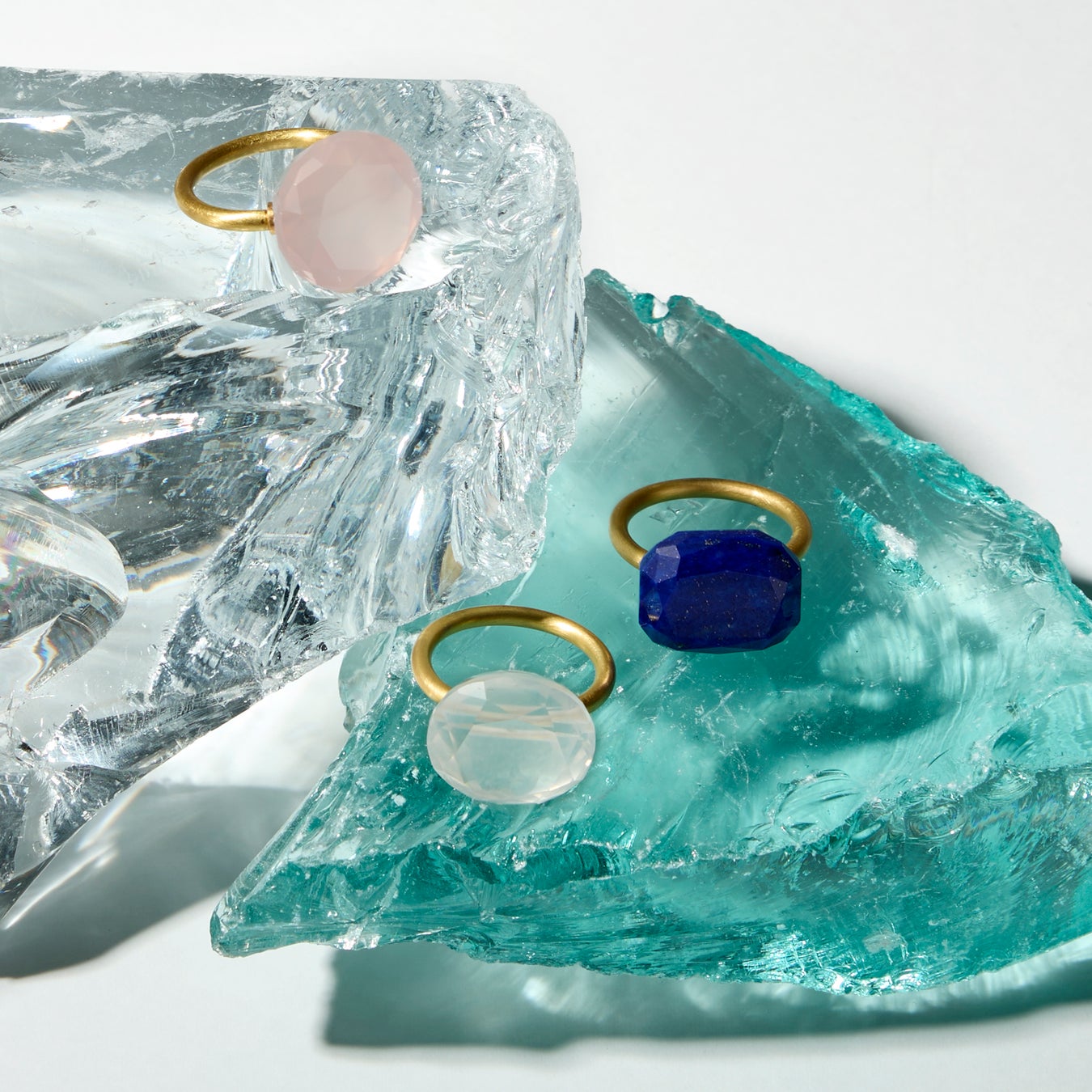天然石と貴金属の魅力を最大限に引き出すデザインと、丁寧な手仕事が魅力の<エツコ ソノベ>。ブランド初期から人気である天然石をトップにセットした一点物のリングを、さまざまなカラーやカッティングで豊富にご用意いたしました。今シーズンはマットな質感やミルキーなカラーなど、淡くやさしいムードがおすすめ。幼い頃に憧れた、キャンディーのような甘美でノスタルジックな佇まいが魅力です。