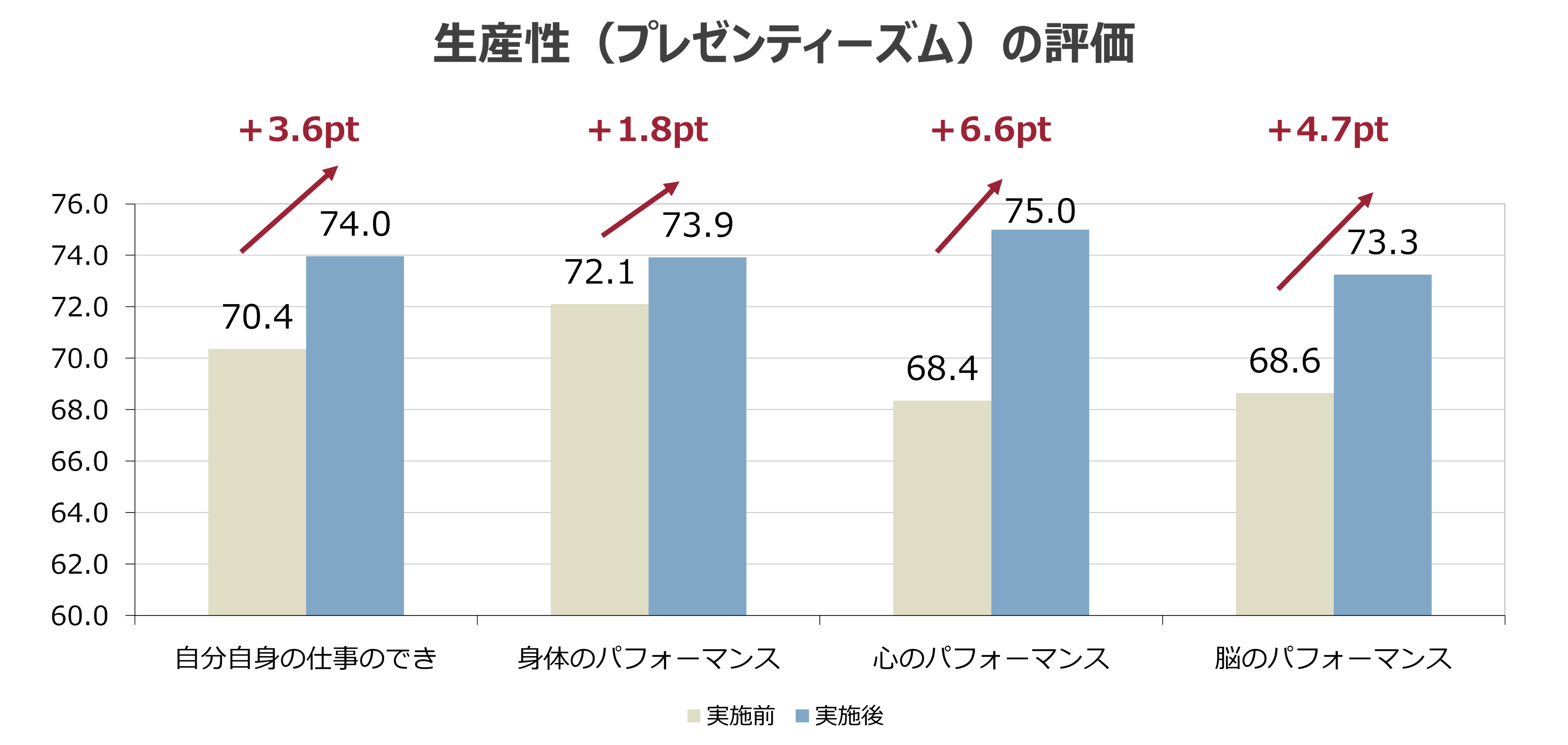 結果④:生産性(プレゼンティーズム)3.6ポイント改善。心身及び脳のパフォーマンス向上を実感