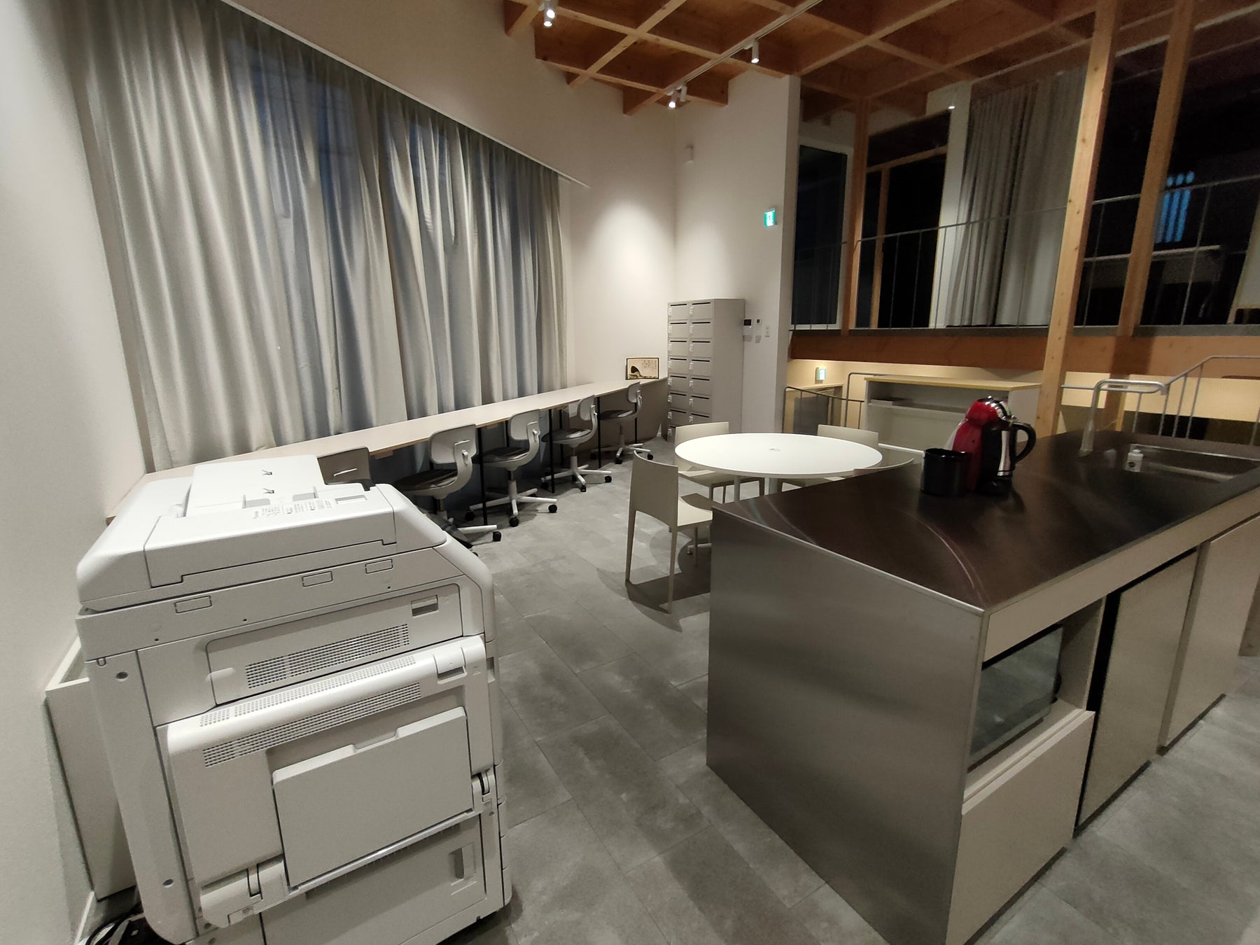 フリーWi-Fi、コピー・プリント・スキャナーの複合機が完備され、コーヒー、紅茶等のフリードリンクが用意されたキッチンもあり、仕事がはかどります。