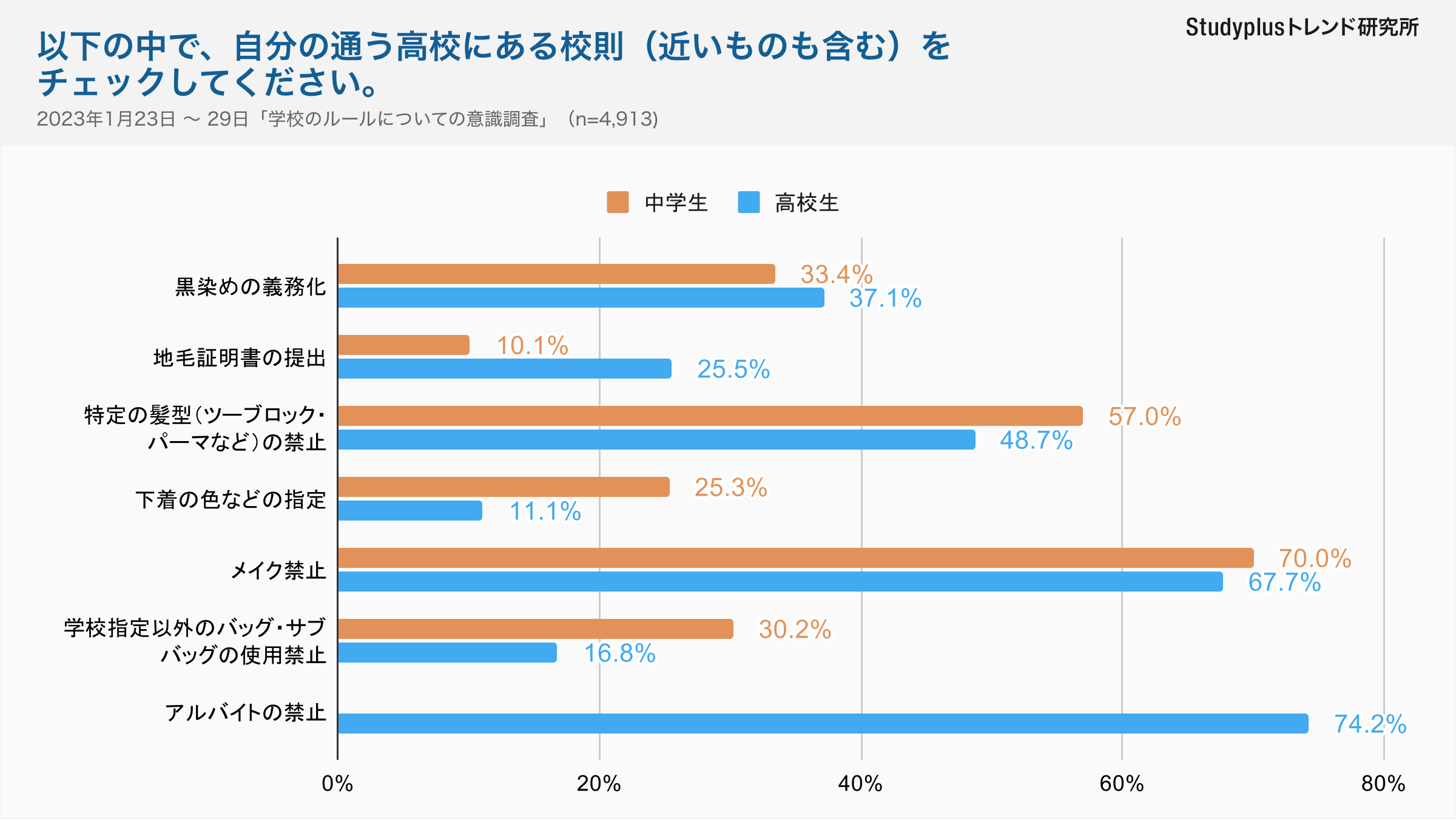 中学は“下着の色指定”・高校は“地毛証明書の提出”の校則が未だ20%以上存在 中高生5,697名・高校教員209名に制服・校則に関する調査を実施