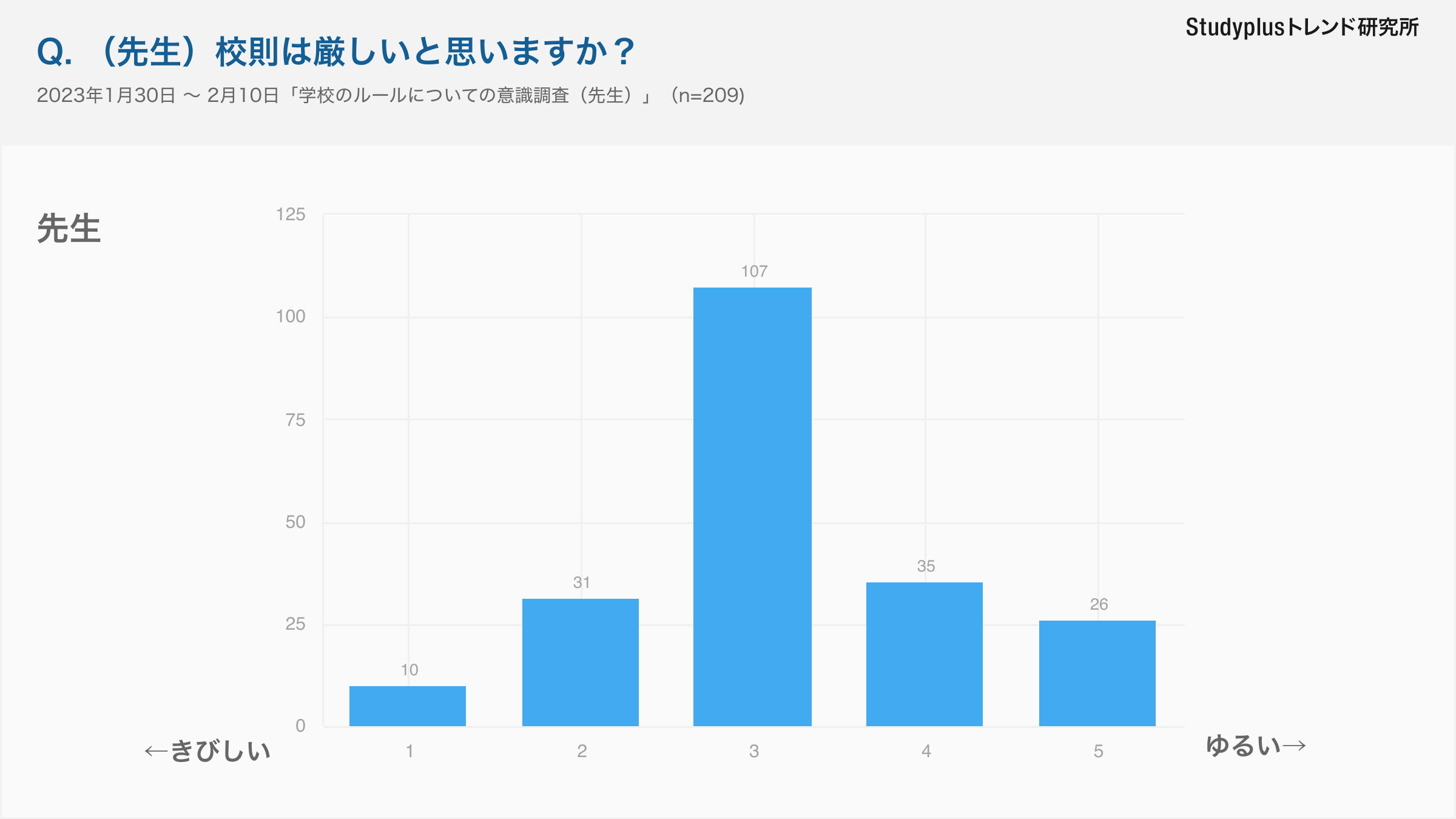 ・先生視点でも、中間の数字である「3」が最も多い結果。