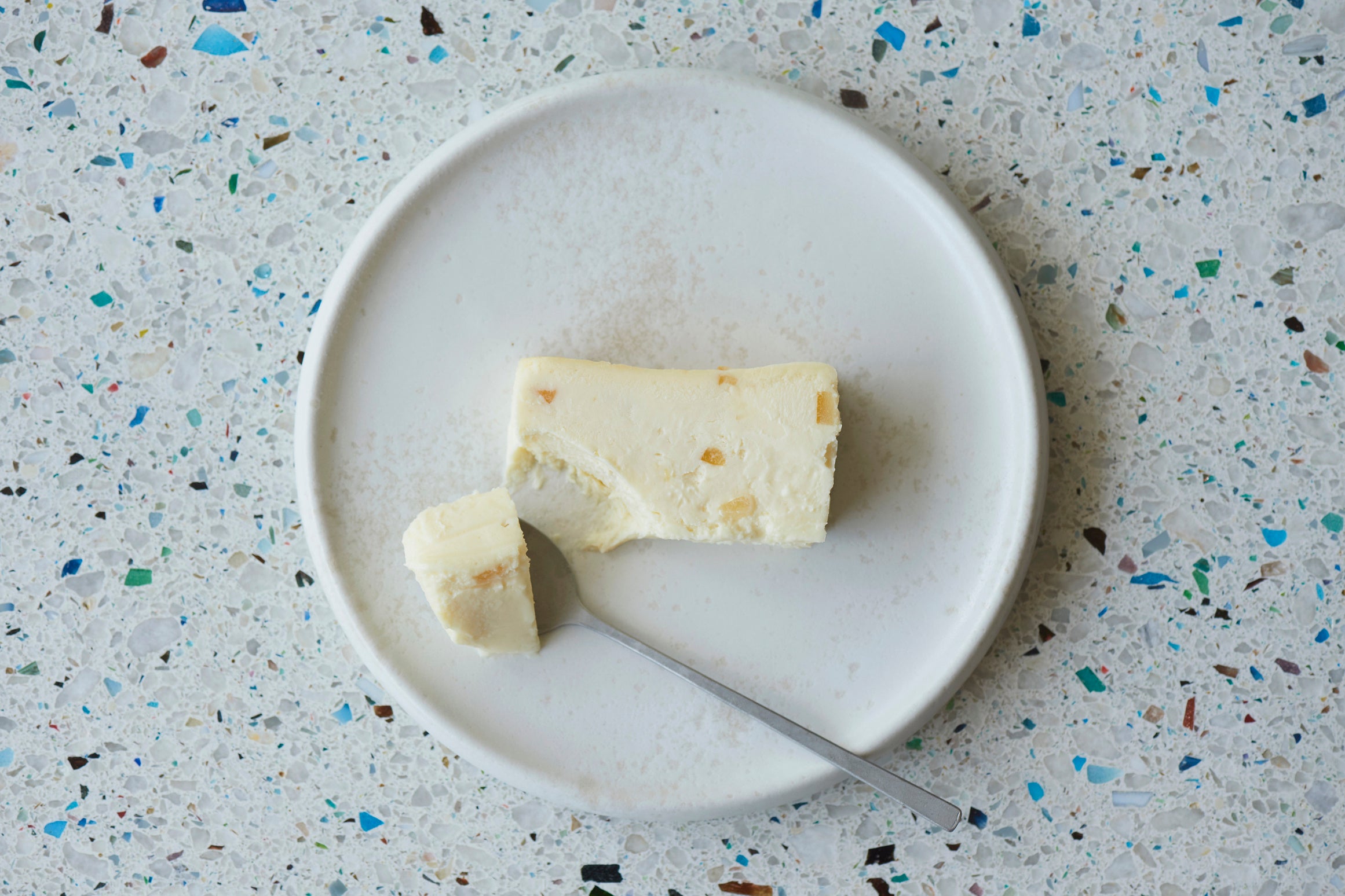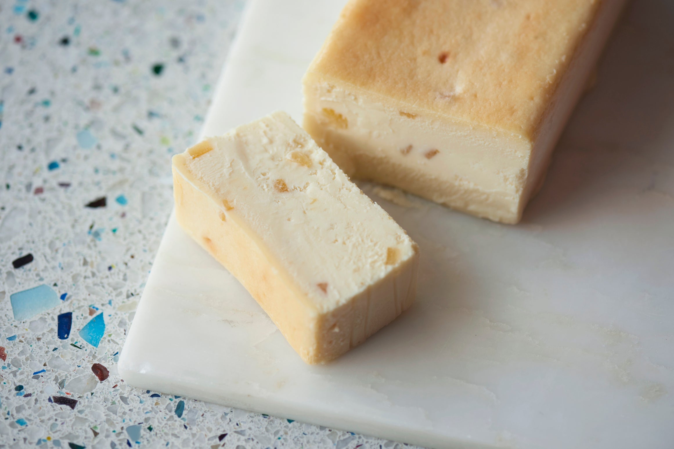 レモンの爽やかな酸味とすっきりとした香りを楽しめるフレーバー。広島県産レモンの果汁と三重県産マイヤーレモンのペーストに瀬戸内産レモンのピールを組み合わせ、奥行きのある味わいに仕上げました。そこへオリーブオイルとハチミツを加え、レモンの爽やかな酸味を広げています。生地にレモンピールを混ぜ込むことで、噛むたびに爽やかな香りが口いっぱいに広がります。おすすめの食べ方は、レモンの酸味と香りを楽しめる半解凍。おすすめのペアリングドリンクは、レモングラスやミント、ローズマリーなどお好みのハーブを高温で濃く抽出し、氷で冷やしたアイスフレッシュハーブティー。ハーブの青く爽やかな味わいがレモンの酸味と相性抜群です。