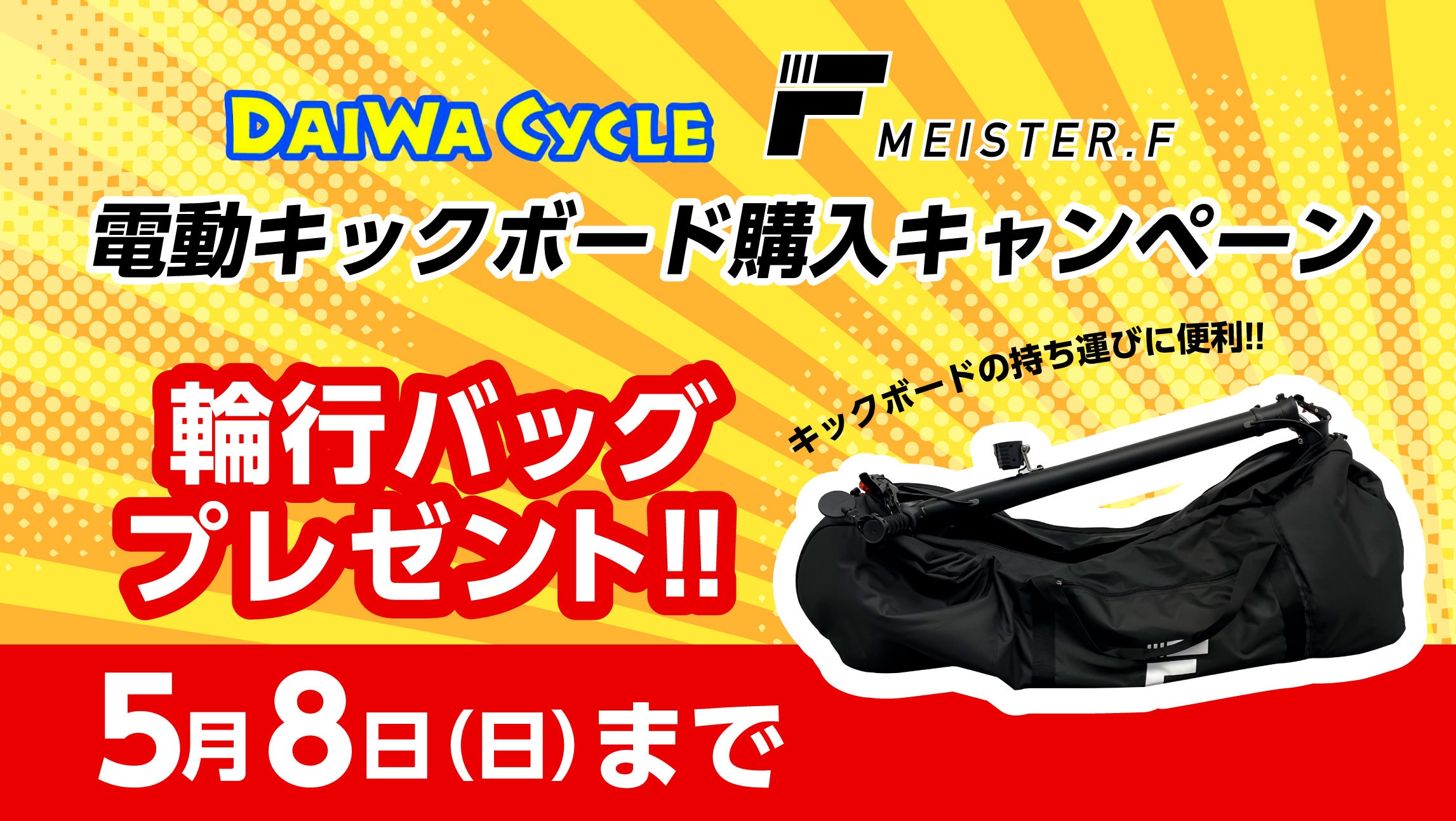 パーソナルモビリティブランド「MEISTER.F」、DAIWA CYCLEならびにDAIWA CYCLE STYLE全店で電動キックボードを購入の方限定、輪行バックプレゼントキャンペーンを実施。