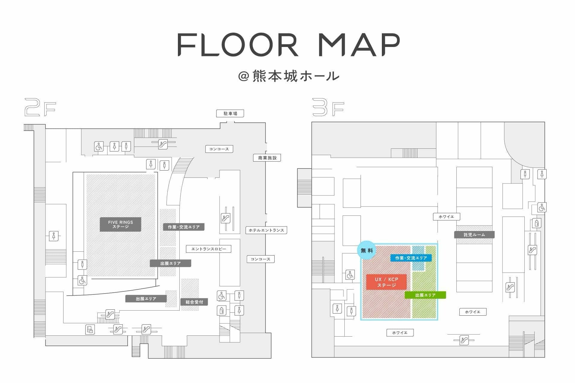 3階は、熊本県・熊本市が運営する「UX&KCPエリア」~熊本からイノベーションを生み出すことを目指す20社以上のピッチ・出展ブース~