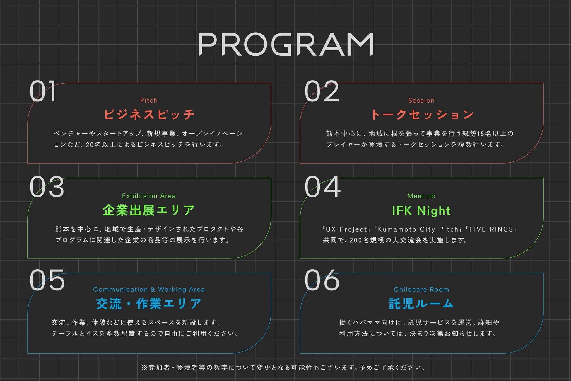 さまざまなプログラムを通して気づきや出会いを提供し、この日から熊本発の新産業・イノベーションを加速させます。