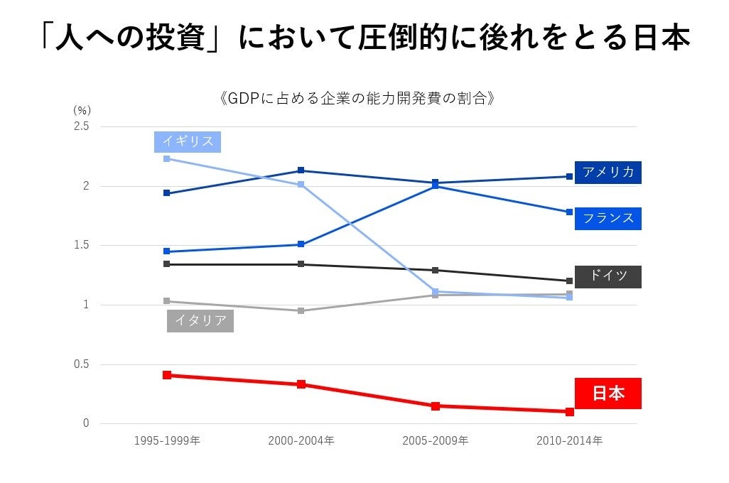 下の図は、人への投資ができていない日本企業の現状を示しています。