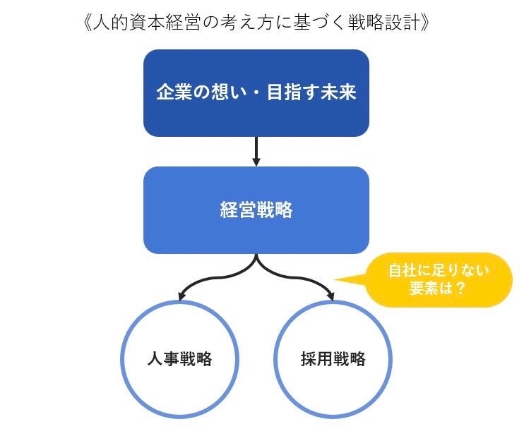 このような問題を解消するために、企業は経営戦略を人事戦略や採用戦略にまで落とし込み、一貫性のある組織運営を行っていく必要があります。