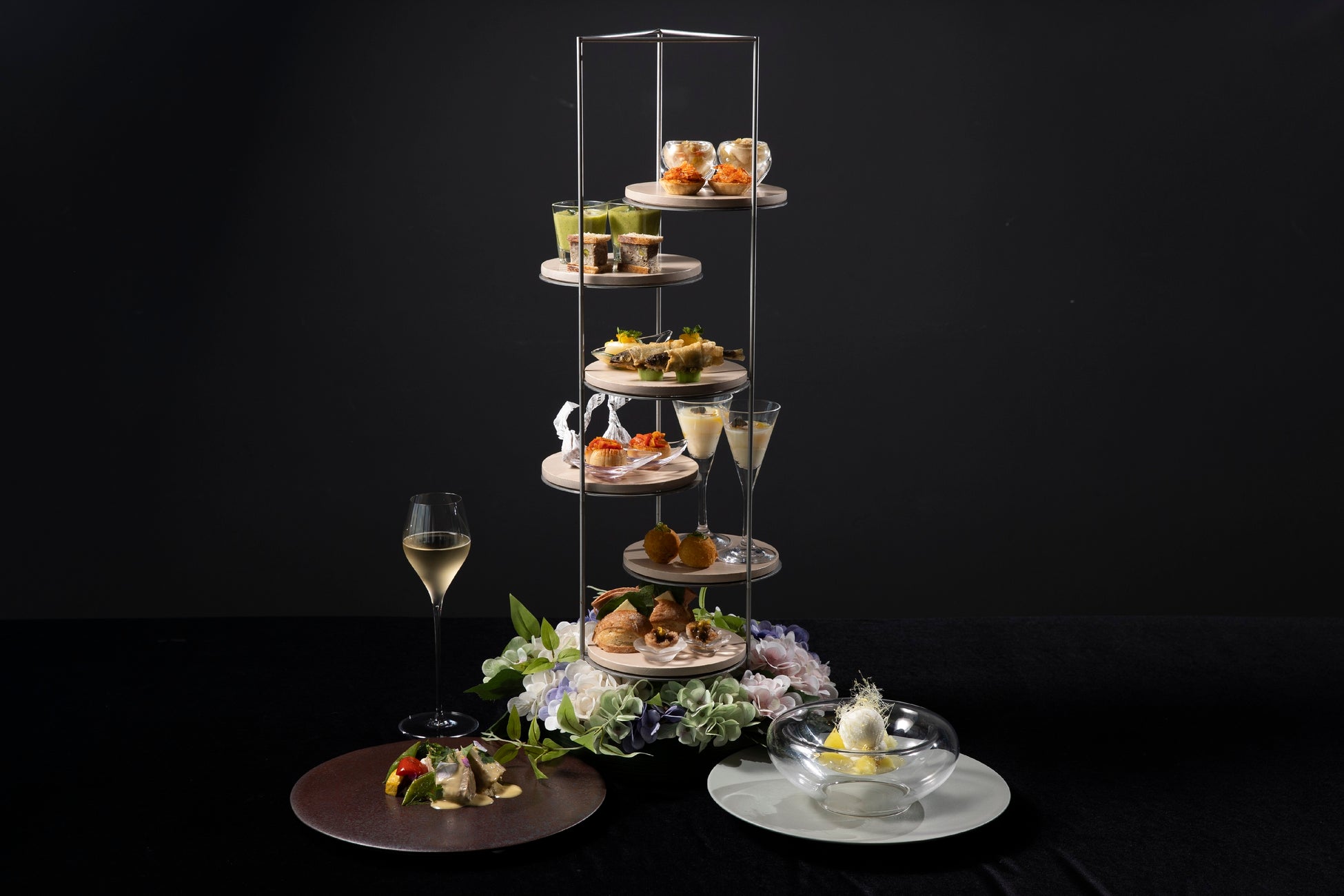 フレンチをベースに月の森をイメージしたアフタヌーンティー。ディナーでは、初夏らしい素材を贅沢に使用した前菜に加え、華やかなメインのお料理をお選びいただけます。