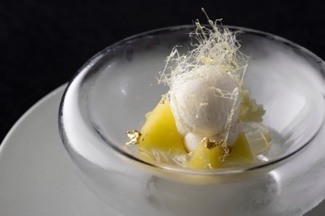 旬を迎えたマスクメロンとミルクアイスクリームのやさしい甘味をシャンパンの華やかな香りが包み込む逸品です。