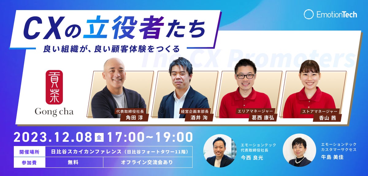 【12/8開催】エモーションテック主催のCXマネジメントイベント『CXの立役者たち』へ「ゴンチャ」が登壇