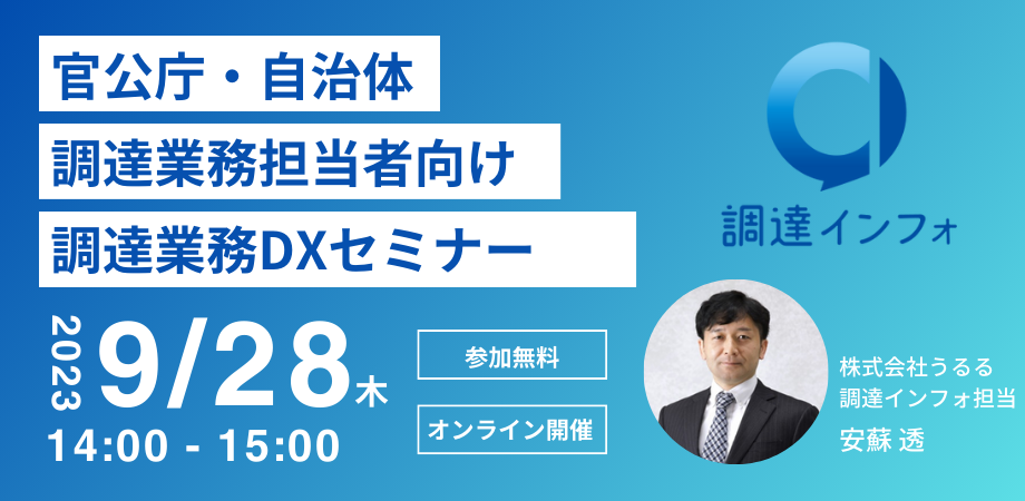 官公庁・自治体・独立行政法人向け購買調達サービス「調達インフォ」、9月28日に調達業務担当者向けセミナー「調達業務DXセミナー」を開催!