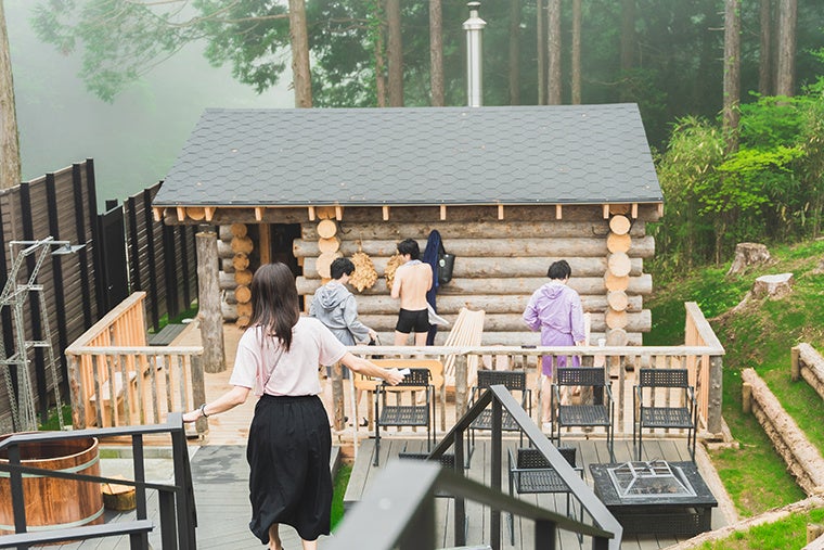 自然の中でサウナ、水風呂、外気浴などが楽しめるアウトドアエリア