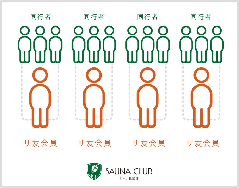 一人の親会員(サウナ倶楽部へ決済する方)が3名までのサ友会員を指名追加できる会員制度です。