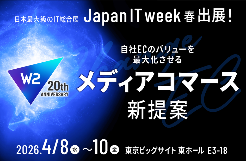 事業形態に合わせたコマースプラットフォームを展開するW2株式会社(本社:東京都中央区、代表取締役:山田 大樹、以下W2)は、2026年4月に開催される「Japan IT Week【春】」に出展いたします。