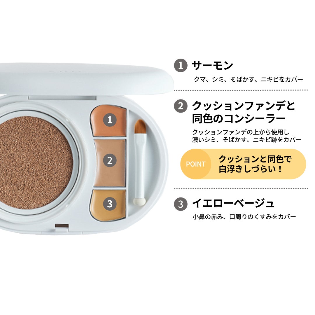 さらに、クマ、シミ、そばかす、ニキビ跡などの人によって異なる肌悩みも思い通りにカバーできるよう、カラーやテクスチャーをこだわり抜いた3色のコンシーラーがセットになっています。