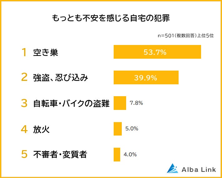 今回、株式会社AlbaLink( https://albalink.co.jp/)が運営する訳あり物件買取ナビ( https://albalink.co.jp/realestate/)は、全国の男女501人を対象に「自宅の防犯」についてアンケート調査を実施しました。