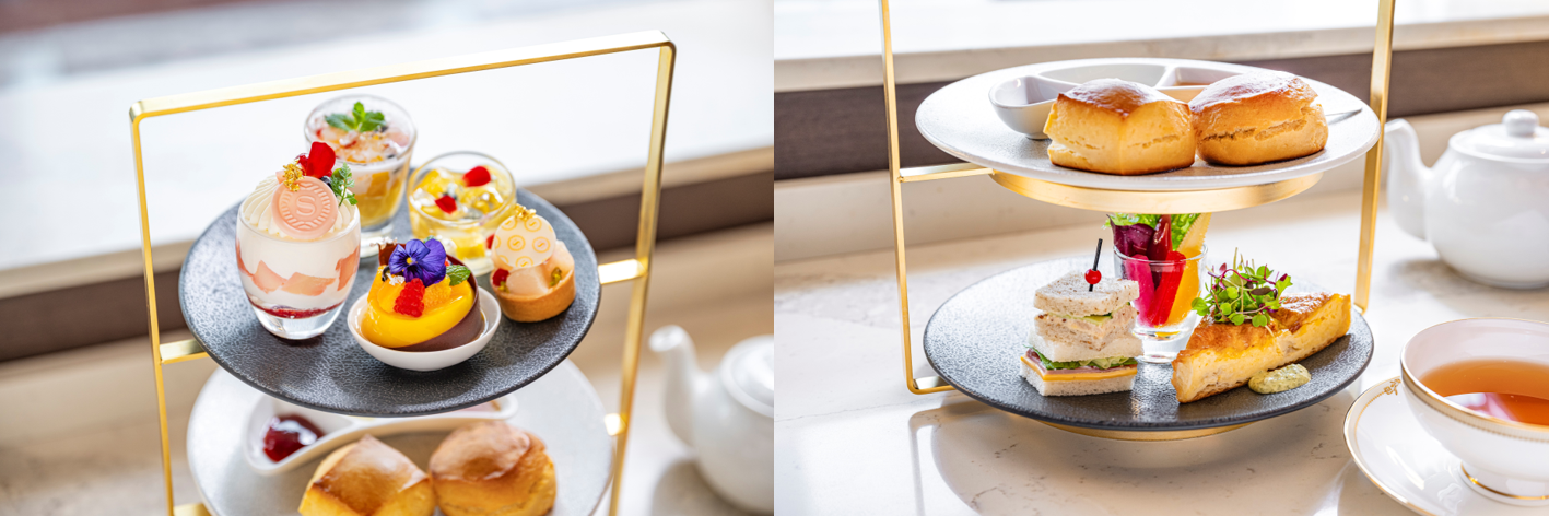 5種類のスイーツ、2種類の焼きたてスコーンやホテルならではのセイボリー