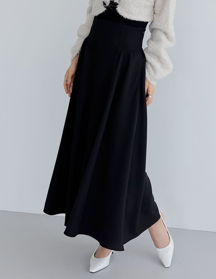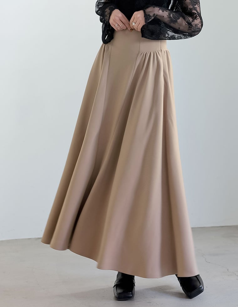 贅沢に生地を使用し、たっぷりとしたフレアラインを描く1枚。