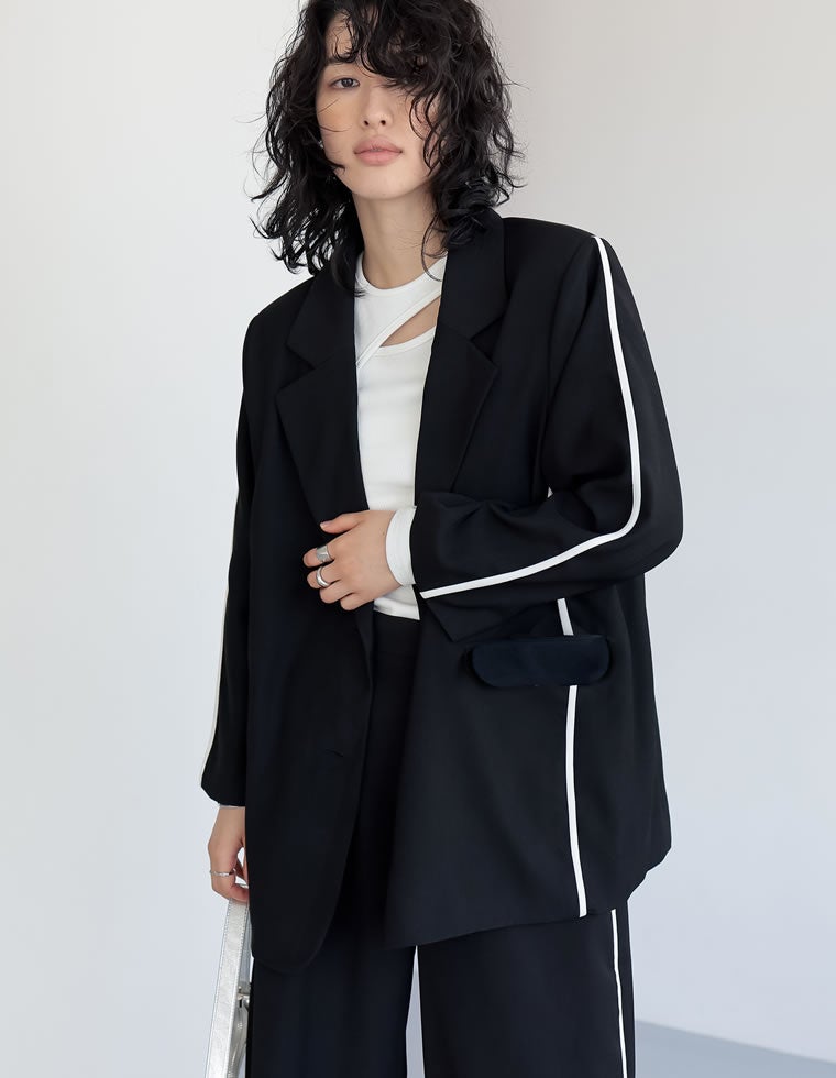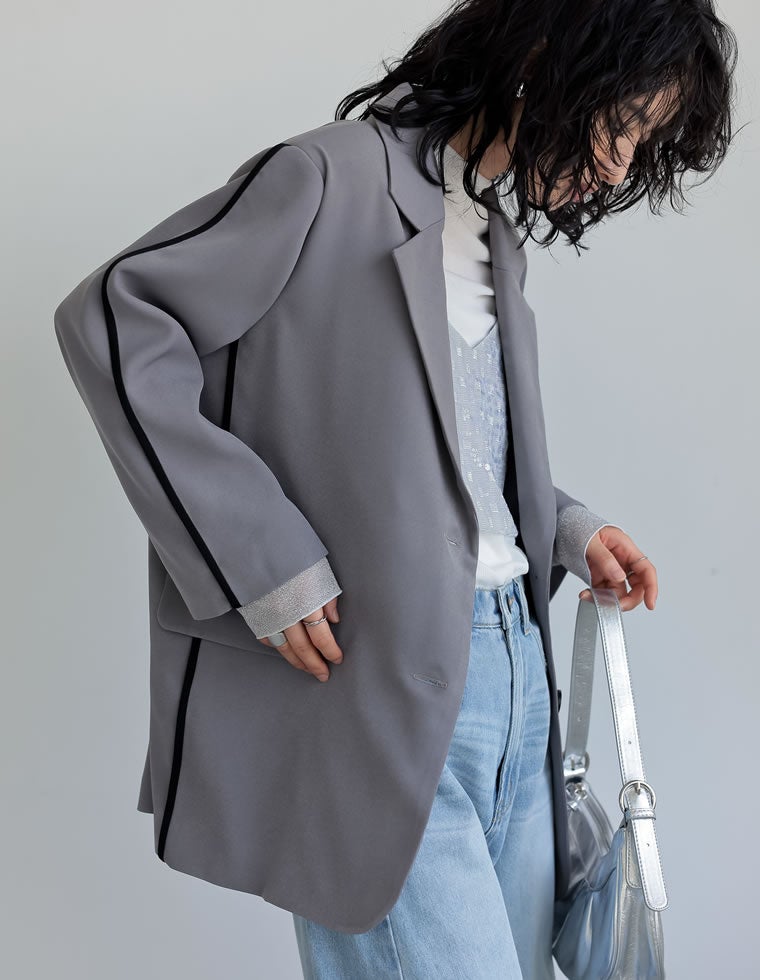 商品名:ソフトツイルラインデザインオーバーサイズジャケット