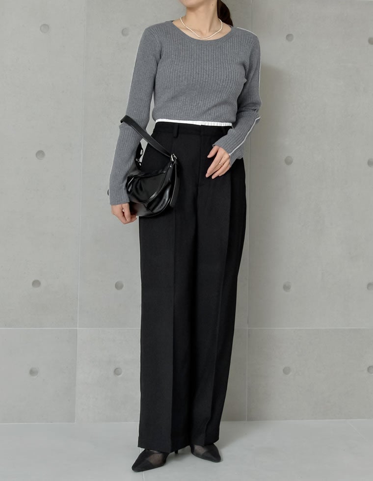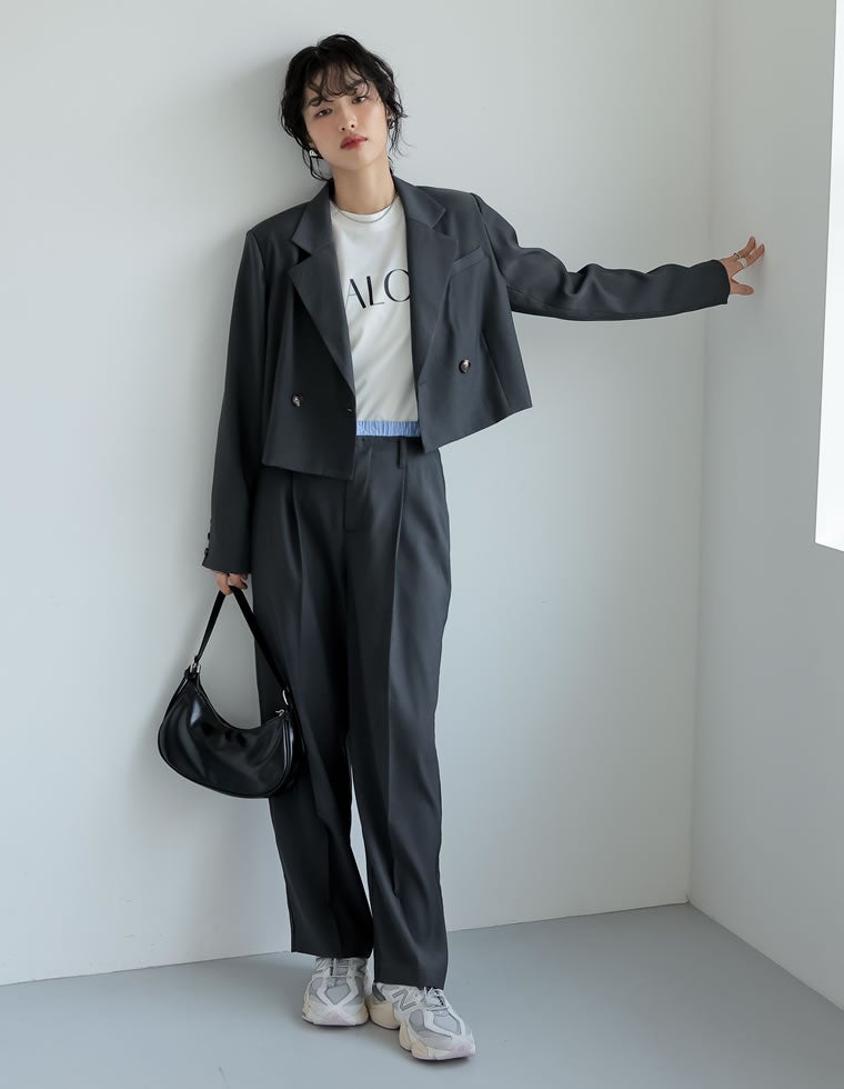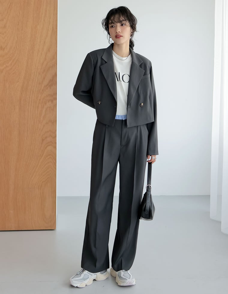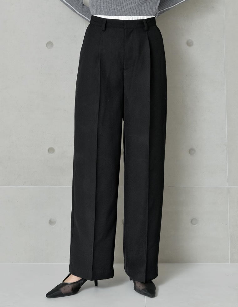パンツはタック入りのベーシックなストレートシルエットに仕上げました。