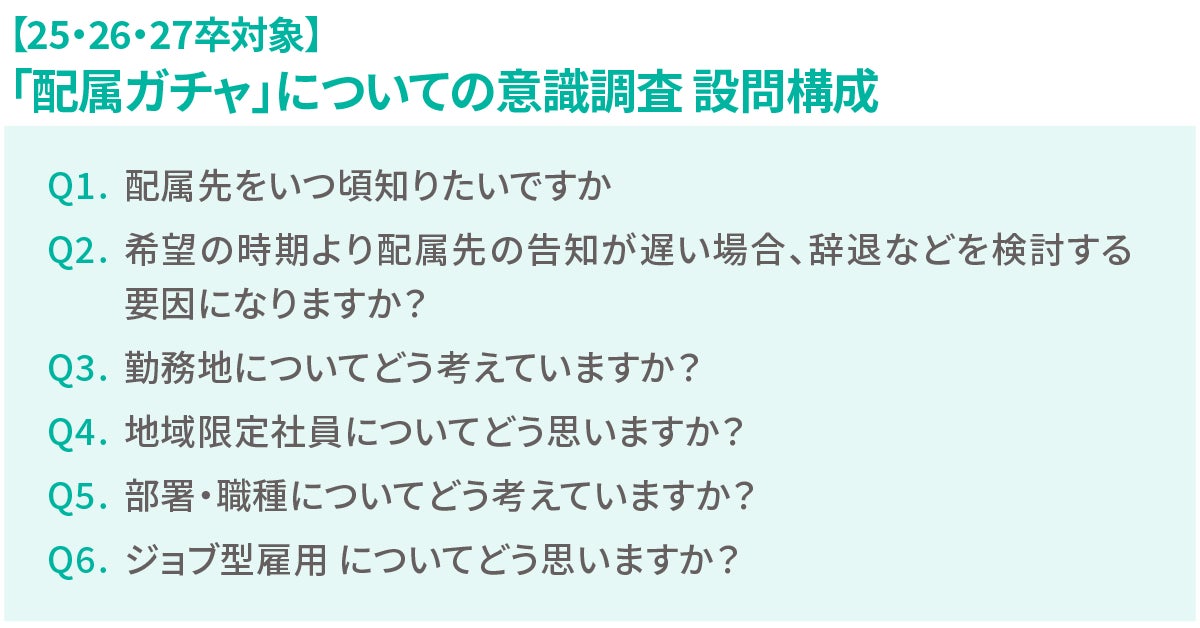 【25・26・27卒生対象】「配属ガチャ」についての意識調査 設問構成