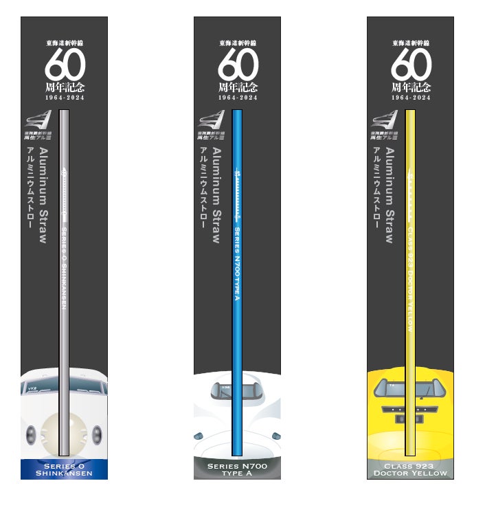 東海道新幹線再生アルミを使用した3種類のストローを販売
