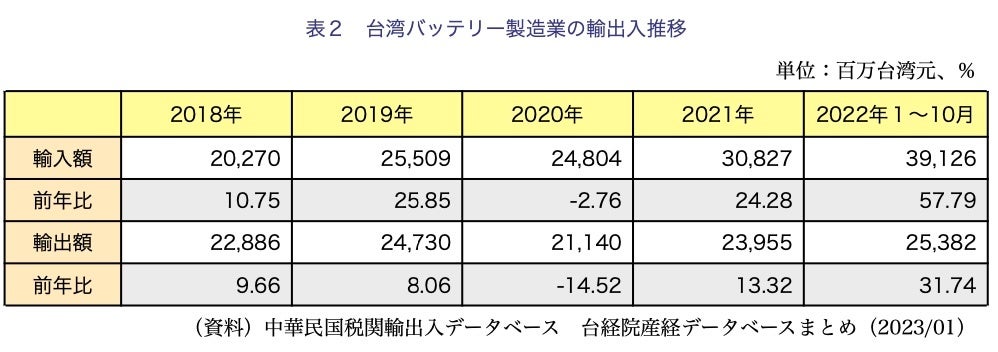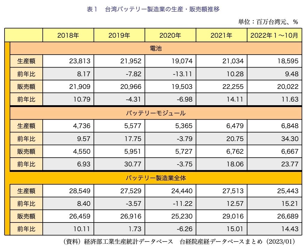 - 台湾バッテリー製造業の概況と2023年の展望