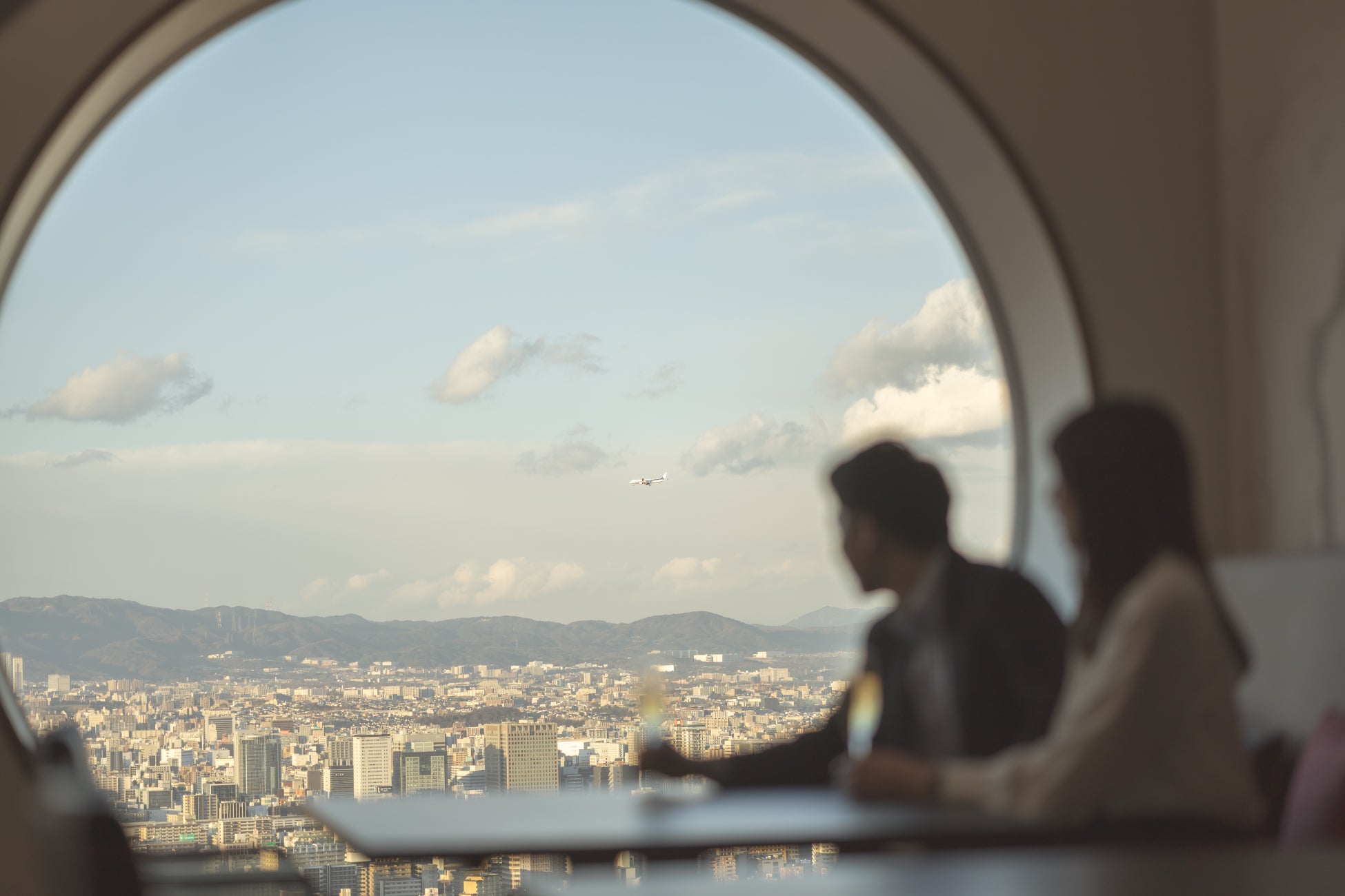 地上173m、風を感じられる開放的な空中庭園展望台からは360度のダイナミックな景色を望むことができ、明石海峡大橋に沈む夕陽や煌めく高層ビル群の夜景など、時間帯ごとに異なる情景が楽しめるのも魅力です。