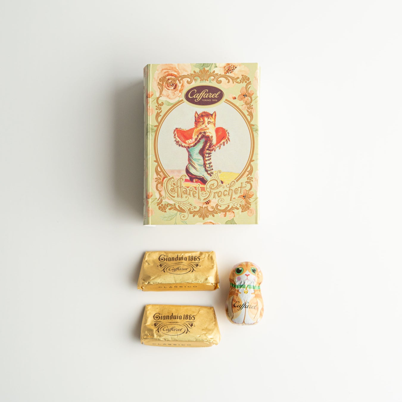 詳細:人気の高い長靴の猫が表紙に描かれたブック型プチギフト。高級感あるデザインで、ちょっとしたギフトに最適です。中にはカファレル人気のジャンドゥーヤをはじめ、キュートなねこのホイルチョコレートなど全3粒をアソート。