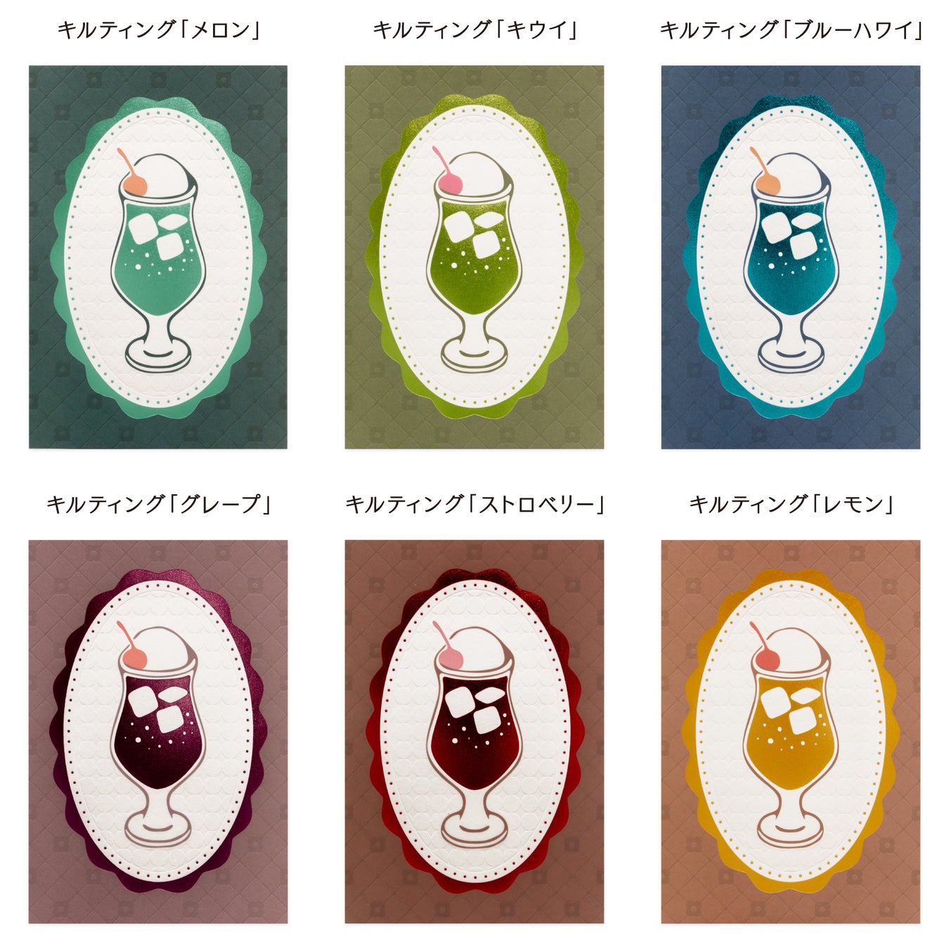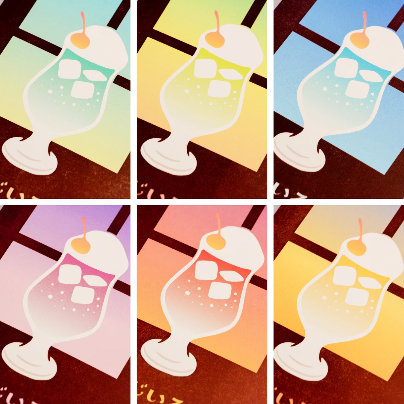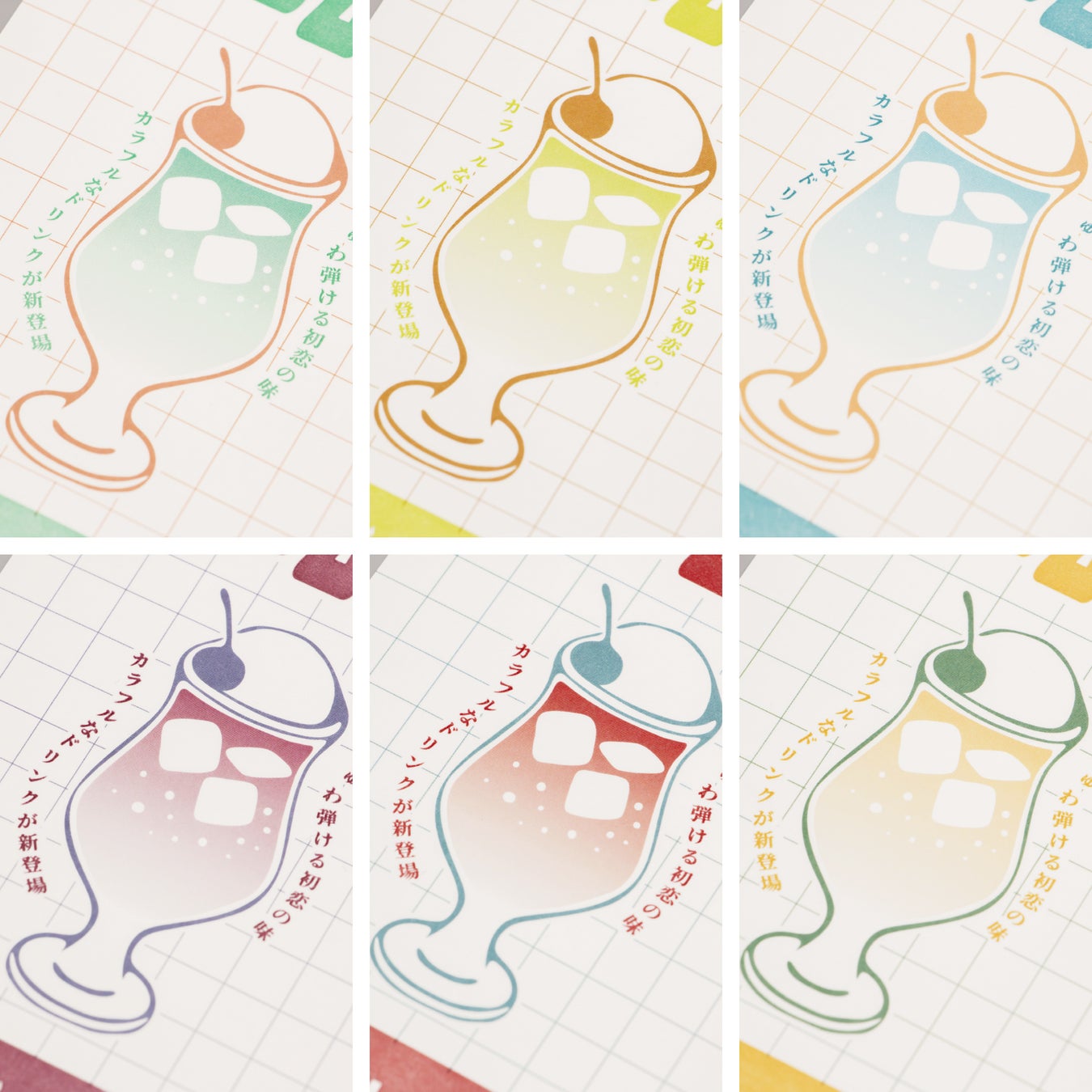6色のクリームソーダをさまざまな印刷技法を組み合わせた8種のデザインで味わう、全48種のポストカードシリーズです。手仕事のぬくもりと技法の個性が光るカードからお気に入りの1枚をどうぞお手に取ってお楽しみください。
