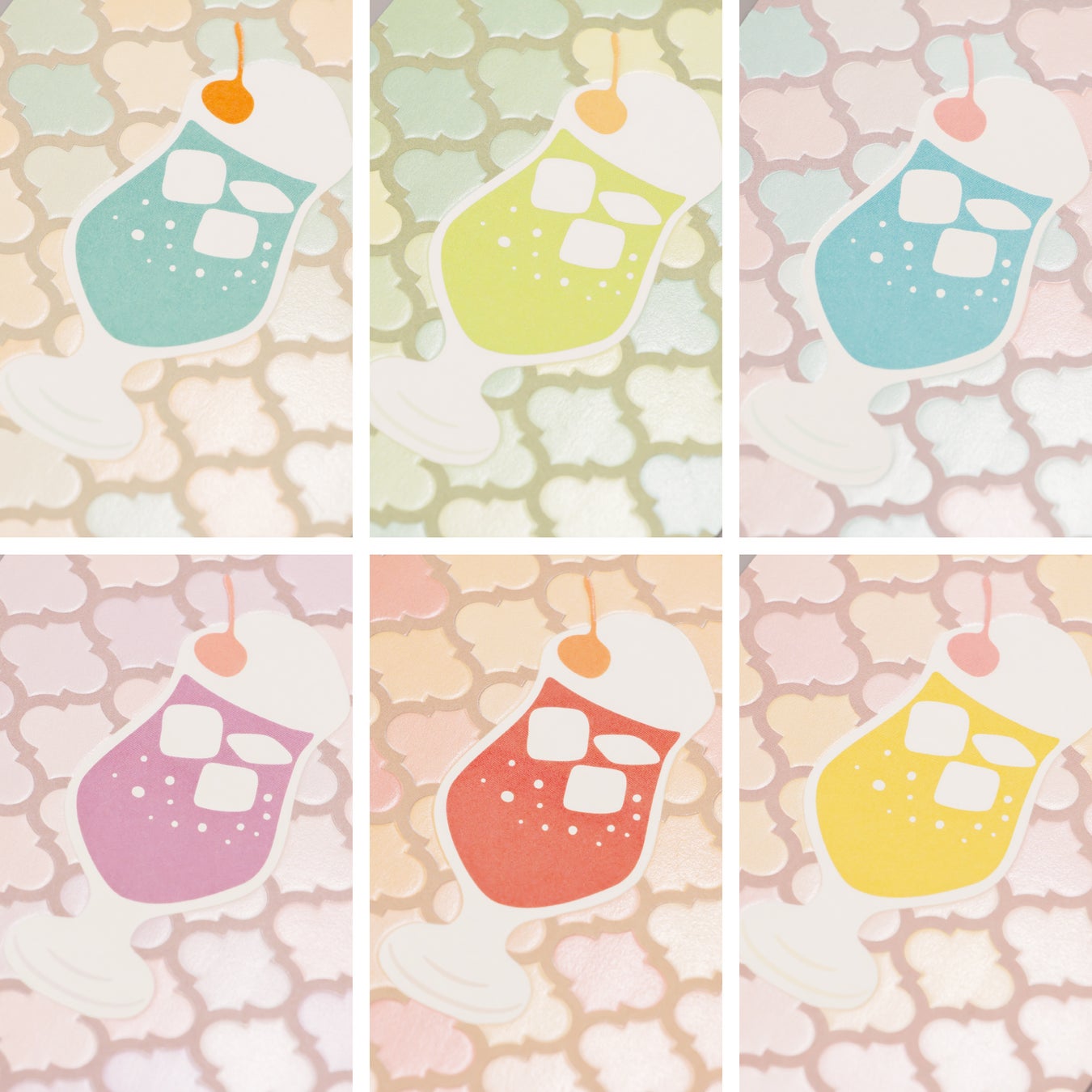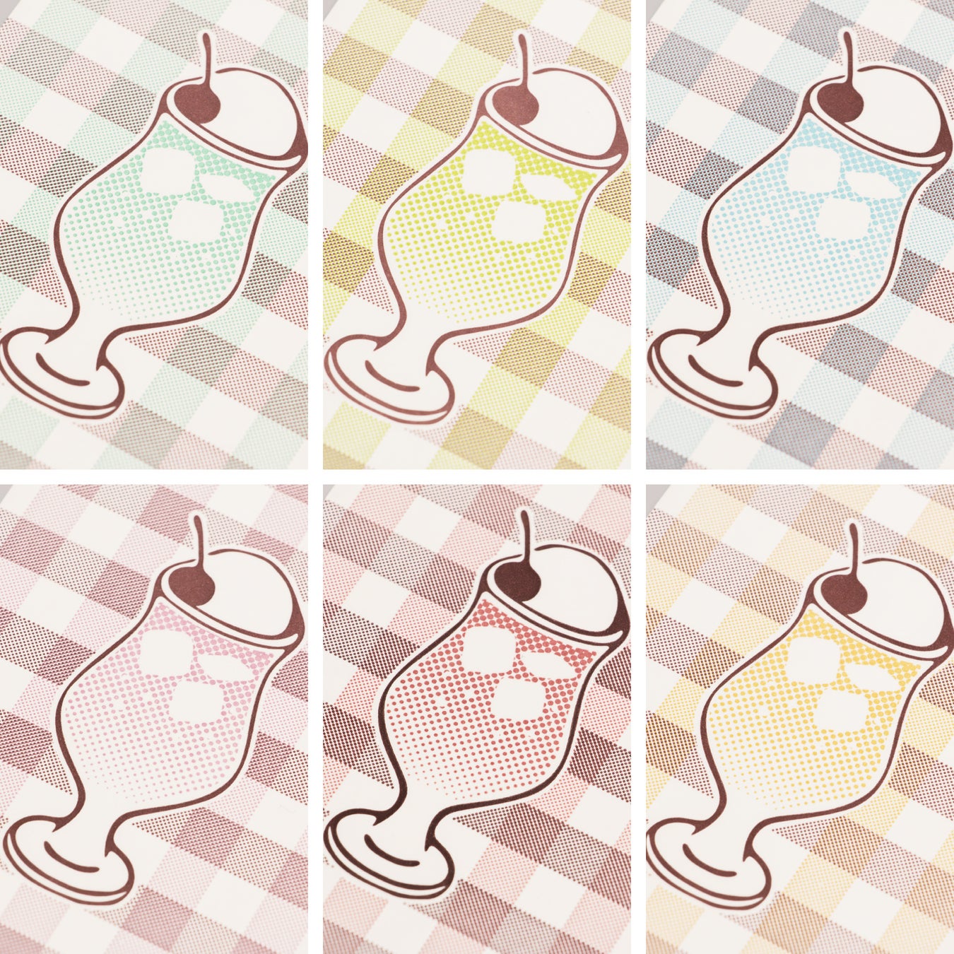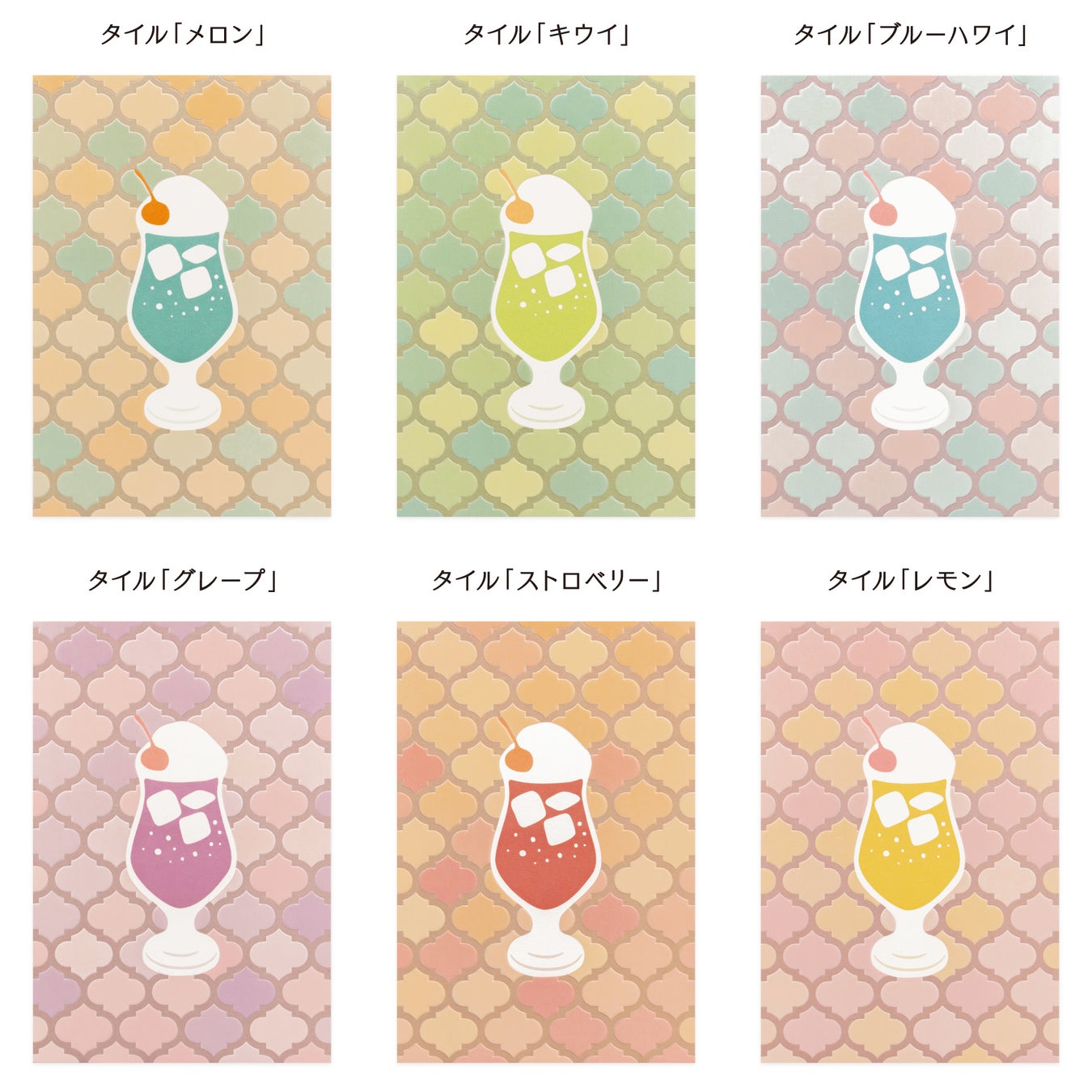 6色のクリームソーダをさまざまな印刷技法を組み合わせた8種のデザインで味わう、全48種のポストカードシリーズです。手仕事のぬくもりと技法の個性が光るカードからお気に入りの1枚をどうぞお手に取ってお楽しみください。