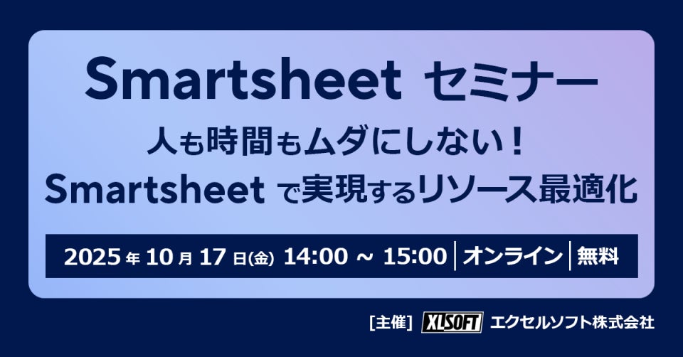エクセルソフト株式会社 (東京都港区) は、Smartsheet ゴールド ソリューション パートナーとして、「人も時間もムダにしない!Smartsheet で実現するリソース最適化」を 2025年 10月 17日 (金) にオンラインで開催します。リソースの最適化や業務効率化に興味のある方、Smartsheet の導入を検討している方は、ぜひご参加ください。