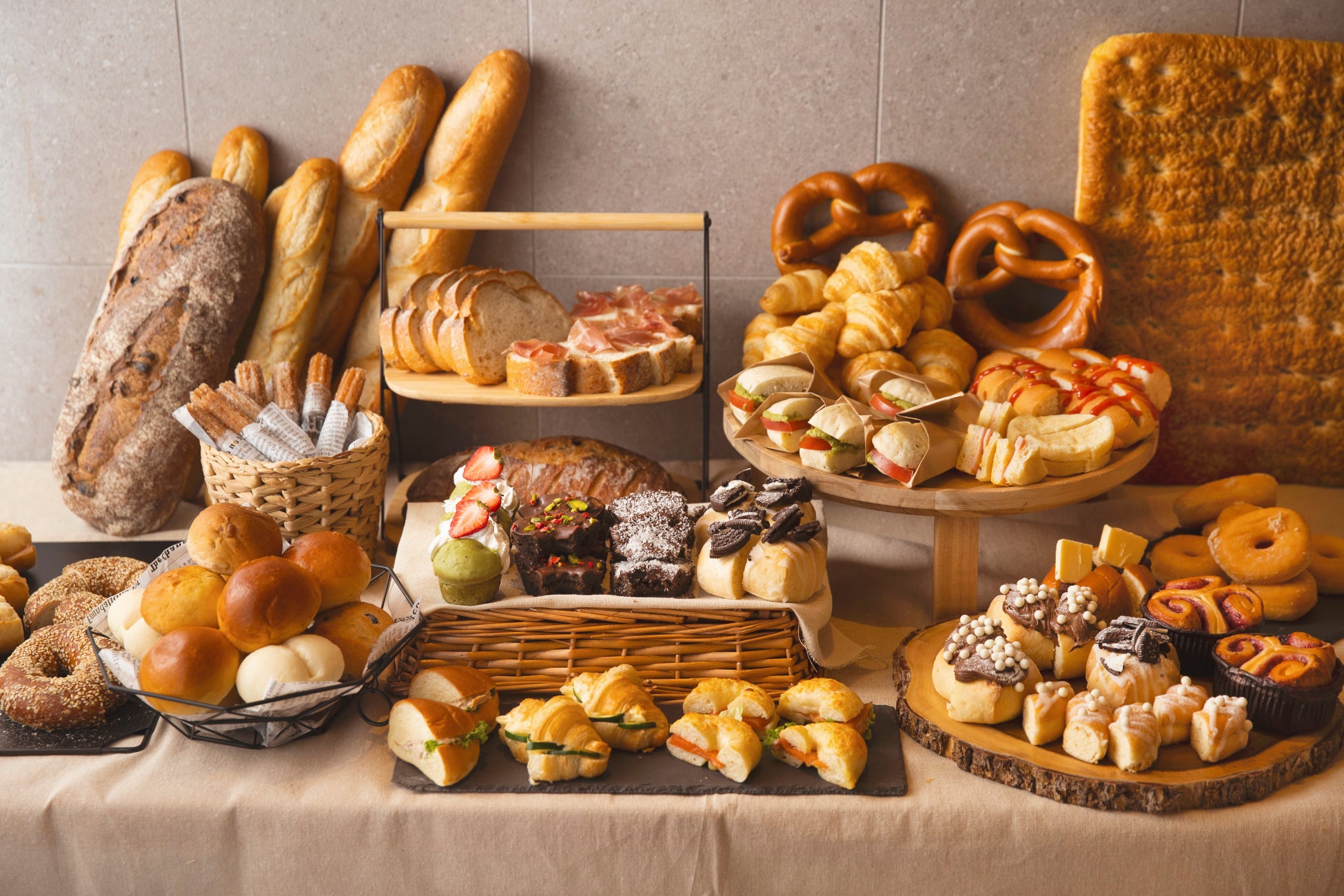 イングリッシュマフィン/ソーセージドック/生ハムバケット/ツナロール/クロワッサン卵サンド/クリームチーズ&生ハムのカントリーローフ/ミニフォカッチャ/ホワイトパン/バジルパニーニ/ミニフランス塩パン/シナモンロール/ダブルチョコファッション/ミニチョコドーナツ/シュガードーナツ/あんぱん/チュロス/チョコチップスコーン/バニラスコーン/チョコチップパン
